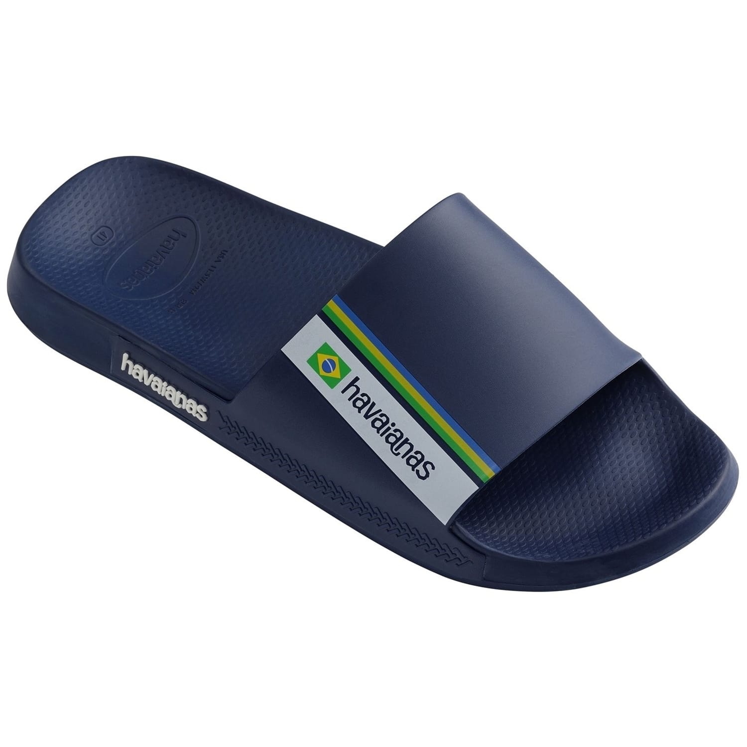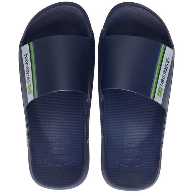 Refresh your summer essentials with the Brasil Slides by Havaianas, crafted from PVC upper and rubber outsole that offers all-day comfort. The slides feature a single strap and the look is finished by the flag of Brazil and the unmistakable stripe on the side sole. -