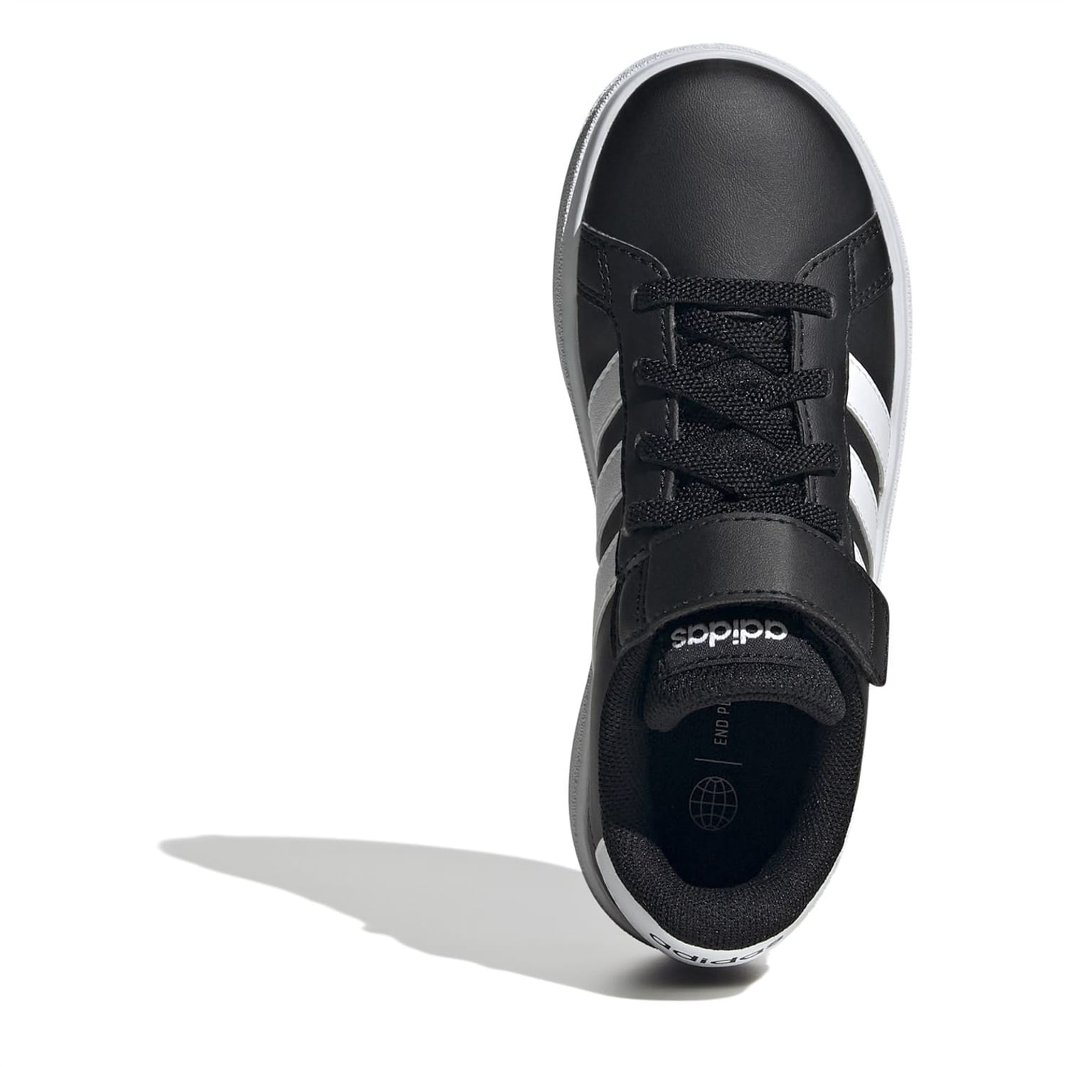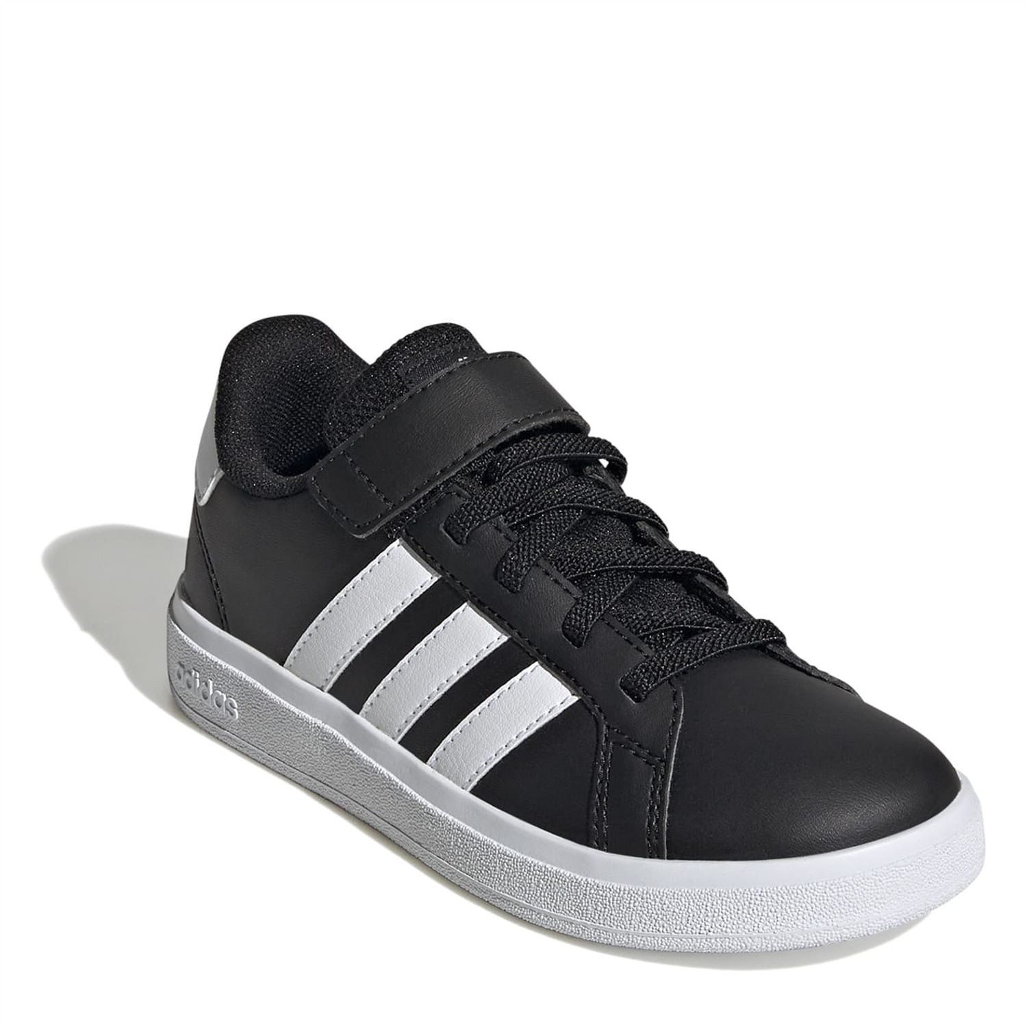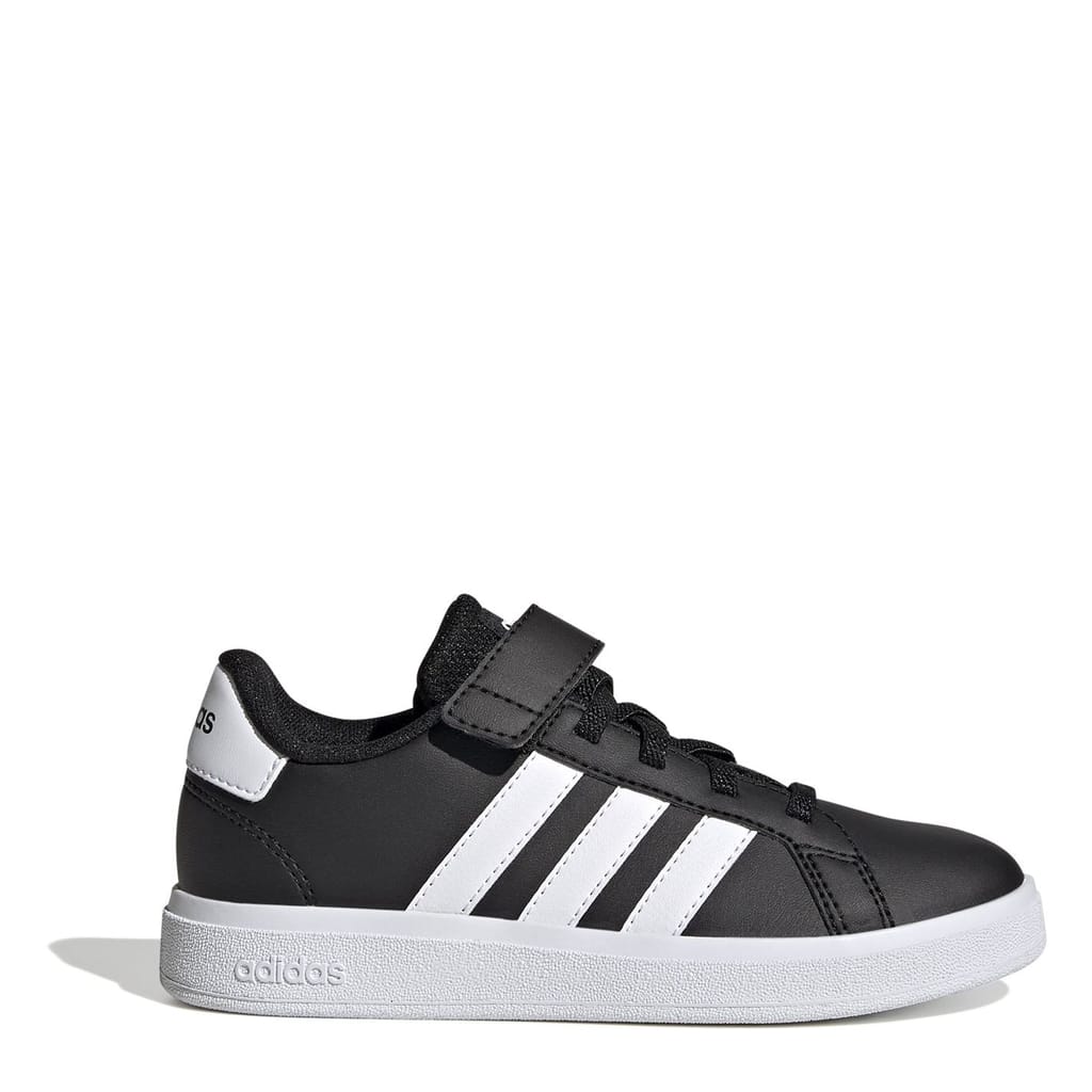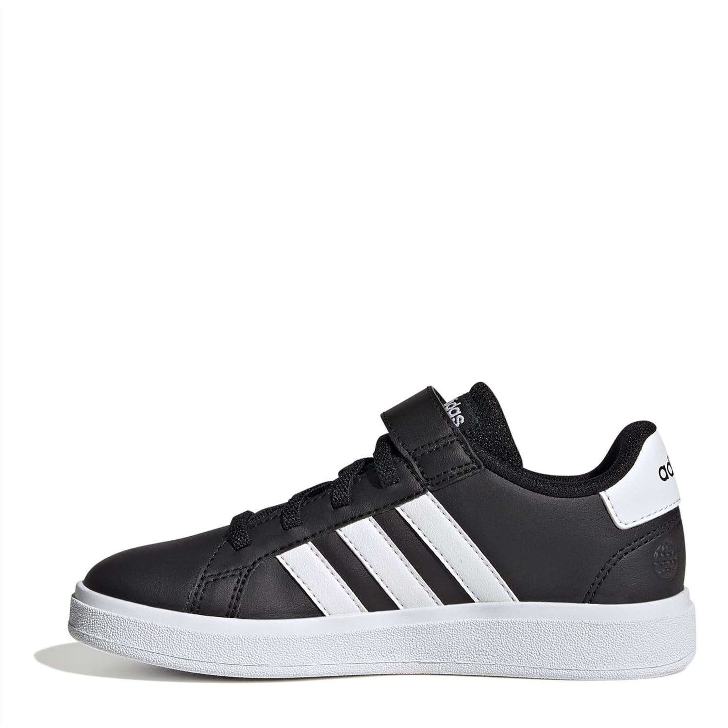 The adidas Grand Court Child Boys Trainers are a great addition to their weekend wardrobe, crafted with a low profile ankle collar, coupled with a lace closure, touch tape fastening strap and cushioning to the midsole and insole that provides all day comfort. Contrasting accents to the upper teamed with tonal stitching gives a simple but stylish look, finished off with the classic adidas three stripe branding to the side. -