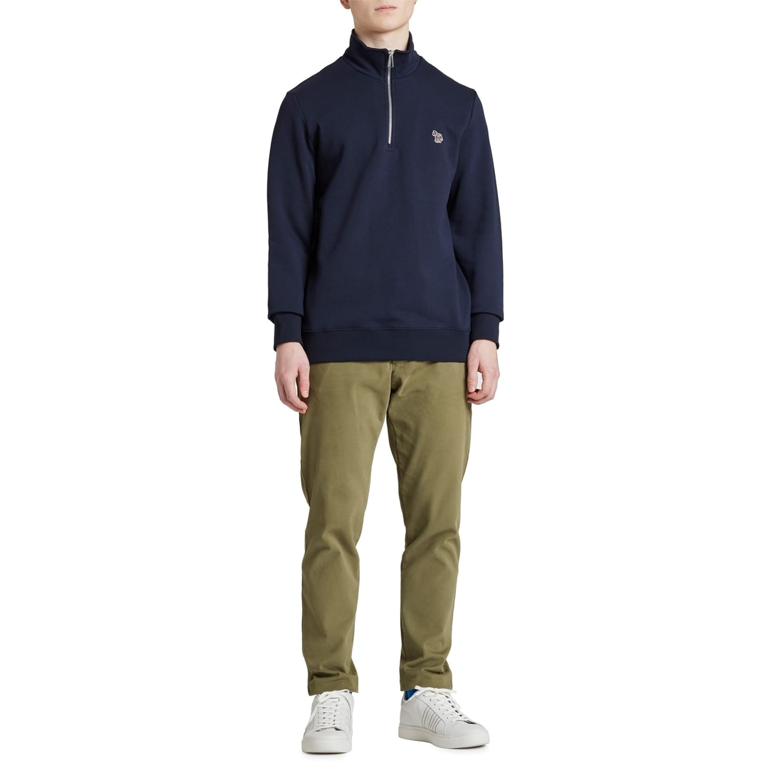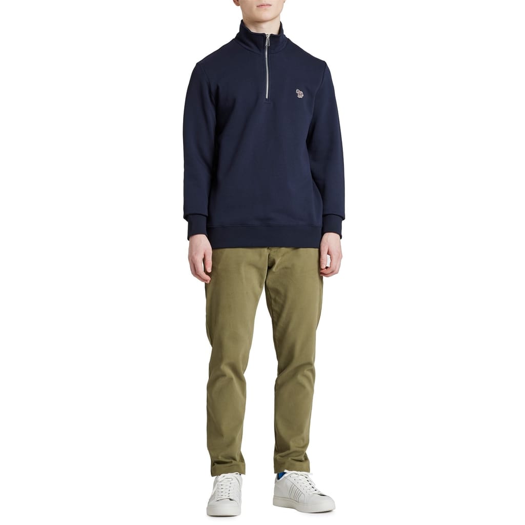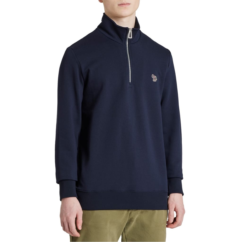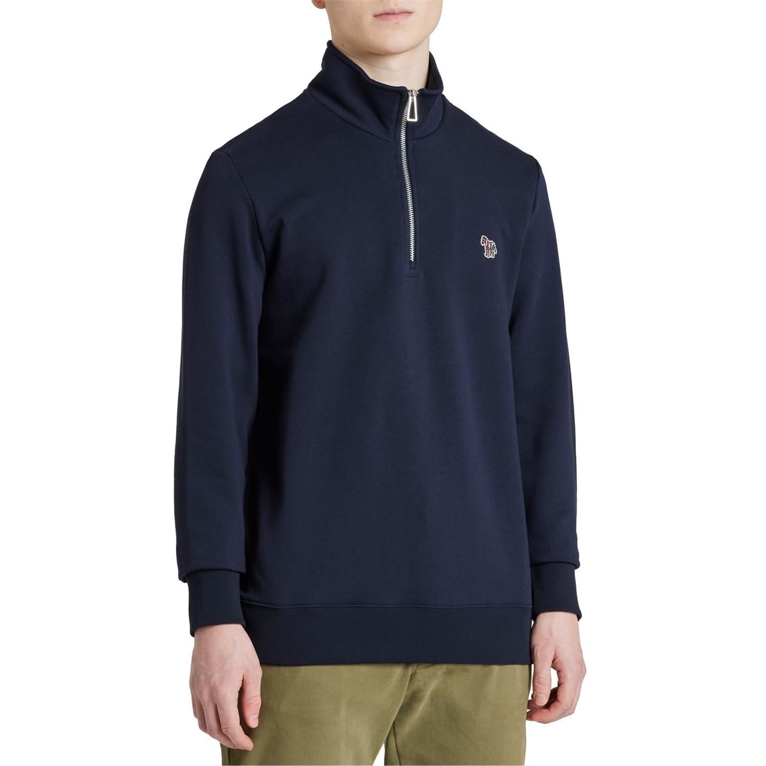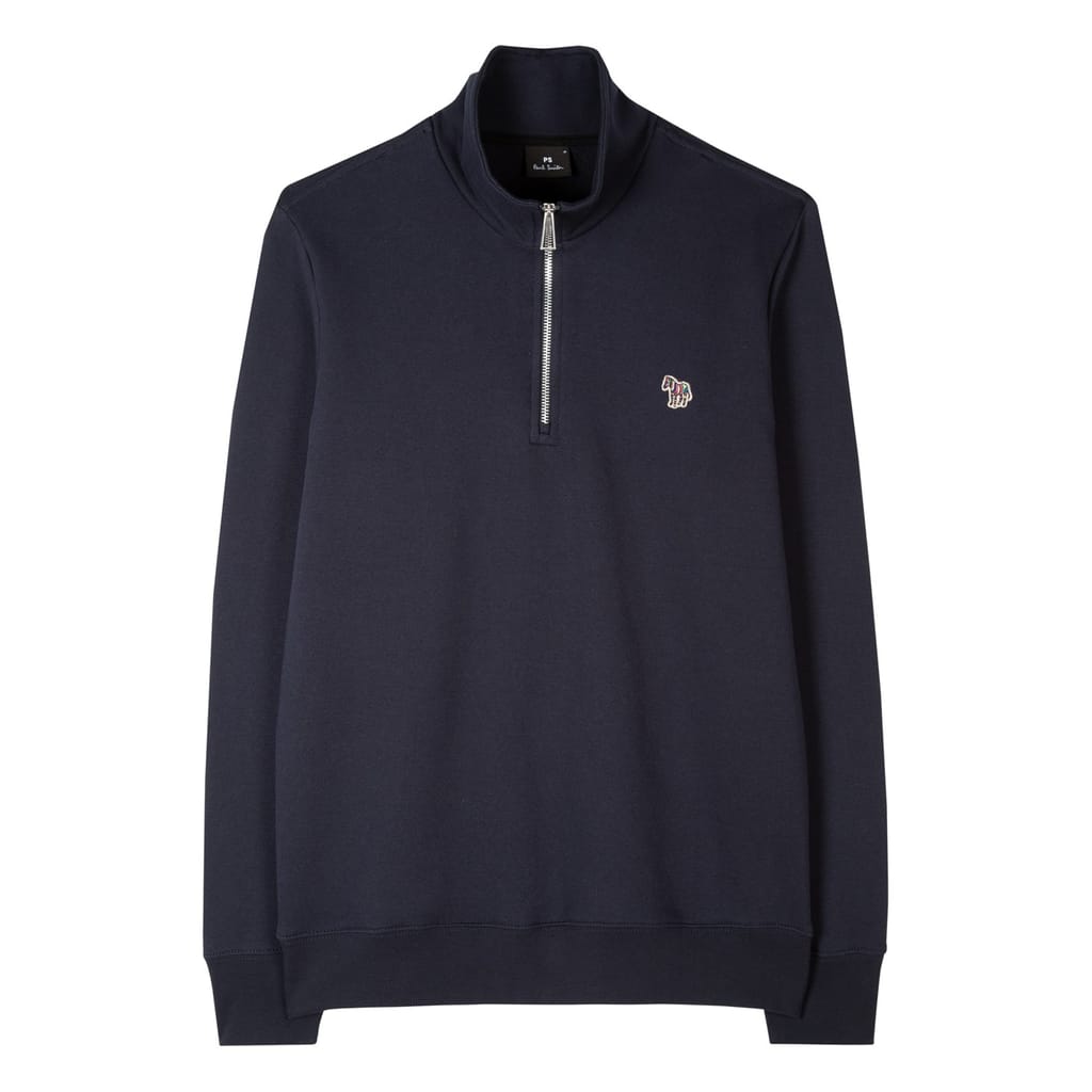 Elevate your collection with this Regular Half Zip Sweatshirt from PS Paul Smith. Crafted in a soft organic cotton composition, this sweatshirt is cut in a regular fit and features a half zip fastening with long sleeves, a funnel neckline, a straight hemline and ribbed trims for a comfortable fit. Designed in a solid colouring throughout, the look is finished with the brand's signature zebra logo embroidered to the chest for brand recognition. Machine washable at 30 degrees.