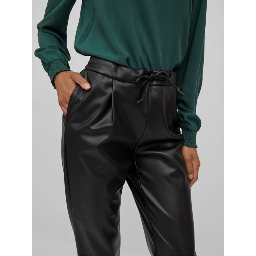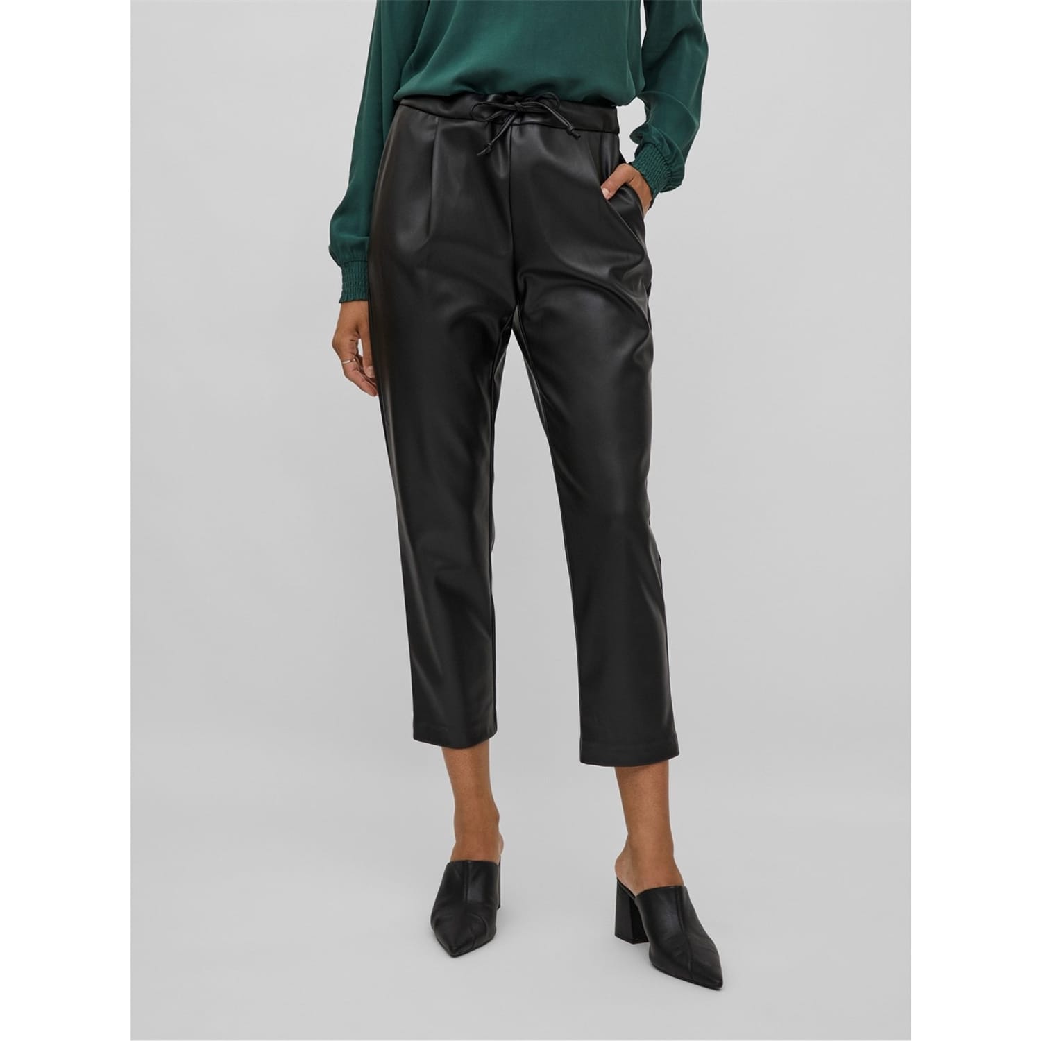 Vila's Nille Coated Trousers feature a high-shine finish. Designed with a modern cut, these trousers offer practical style and a sleek look.