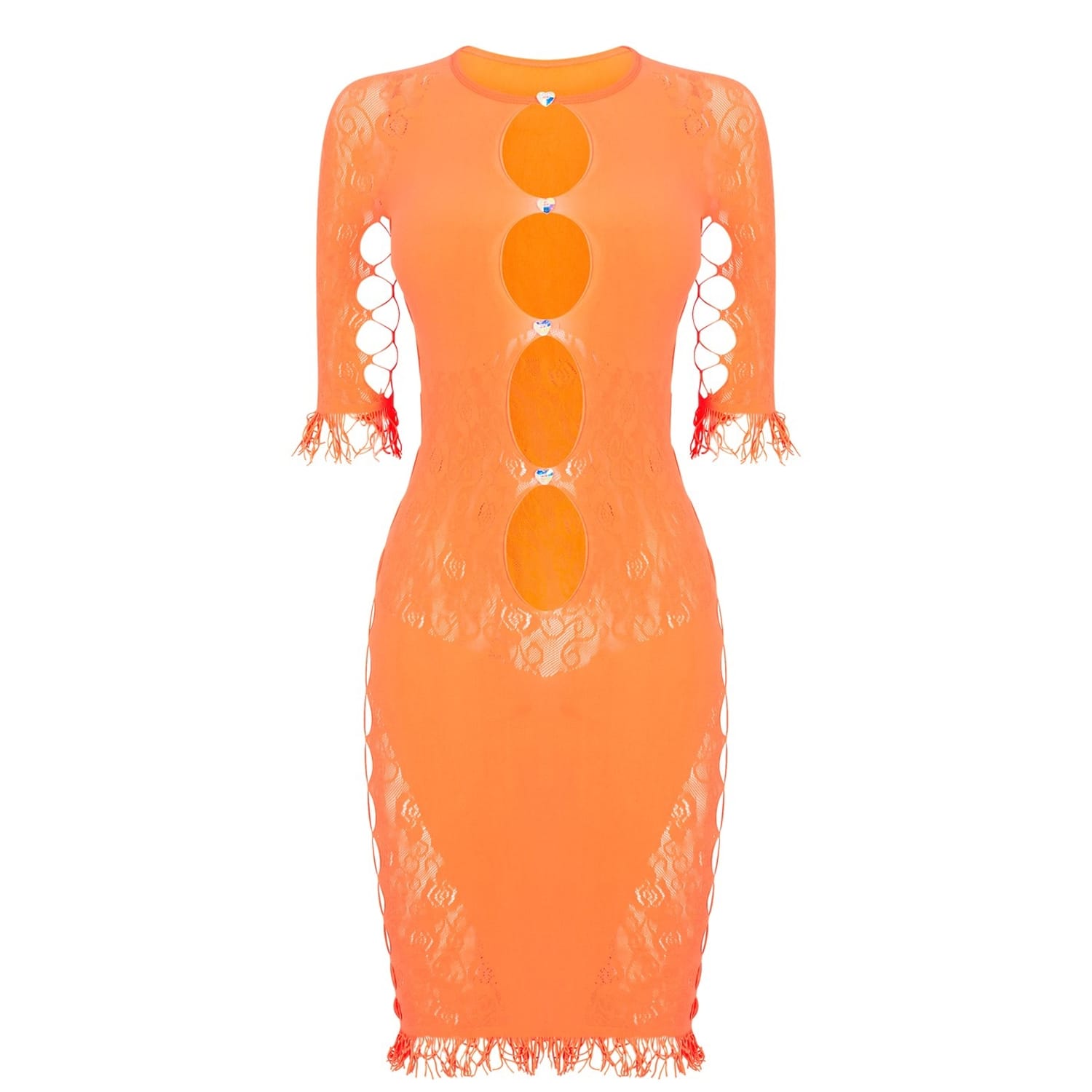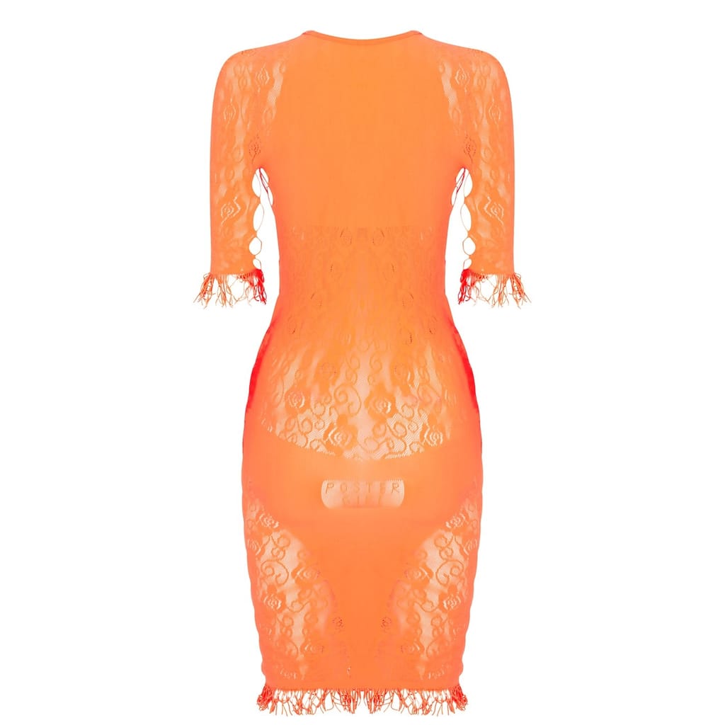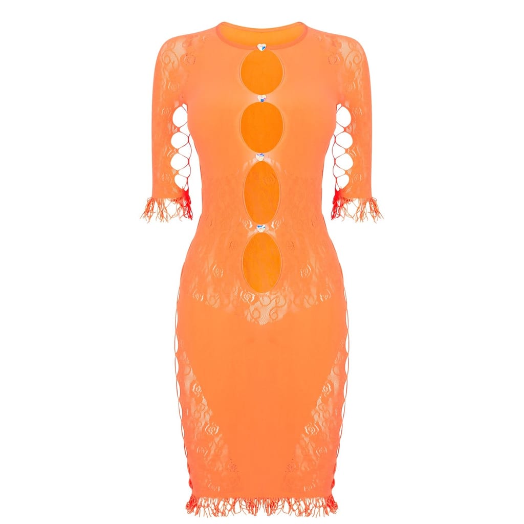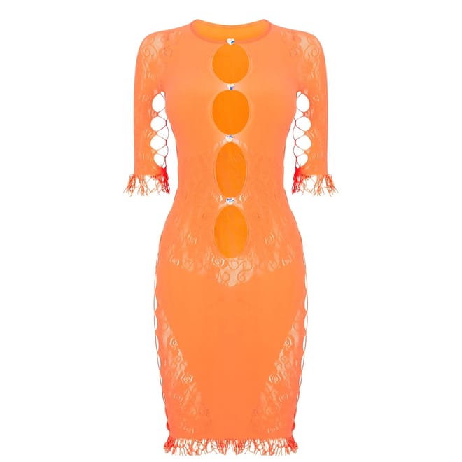 As seen on ultra-influential individuals on social media, the Miranda Dress from Poster Girl is an feminine piece that takes your night out attire to the next level. Featuring psychedelic swirl lace' fabric cut outs from a stretch polyamide mix, this midi length silhouette features cut out details to the chest embellished with crystal heart detailing and a tassel hemline. Finsihed with a scoop neckline and quarter length sleeves, this dress is perfect to pair with mules and a small clutch bag.