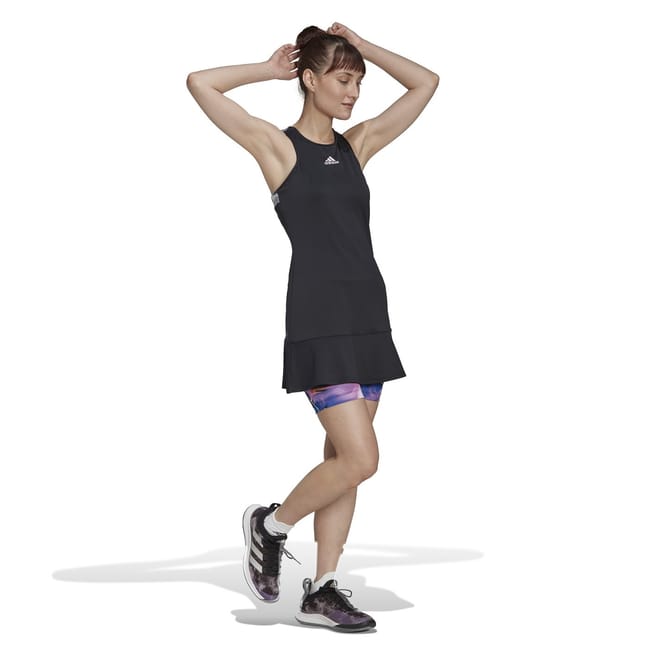 This adidas US Dress Set consists of a dress and shorts. The dress is crafted with thick shoulder straps, a crew neckline and flat lock seams in a solid colouring. The shorts feature an elasticated waistband and flat lock seams in an all over print. Both pieces in this set are designed with a signature logo and are complete with adidas branding. -