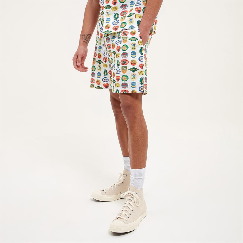 Refresh your off-duty collection with these Nicce Sticker Shorts. Crafted in a relaxed fit with a soft cotton fleece material, these shorts feature an elasticated waistband with drawstring adjustment, two front slip pockets and an open hemline to conclude the shorts legs. Whilst decorated in a solid block colour throughout, the shorts are decorated with the Nicce sticker print throughout for a unique look. -