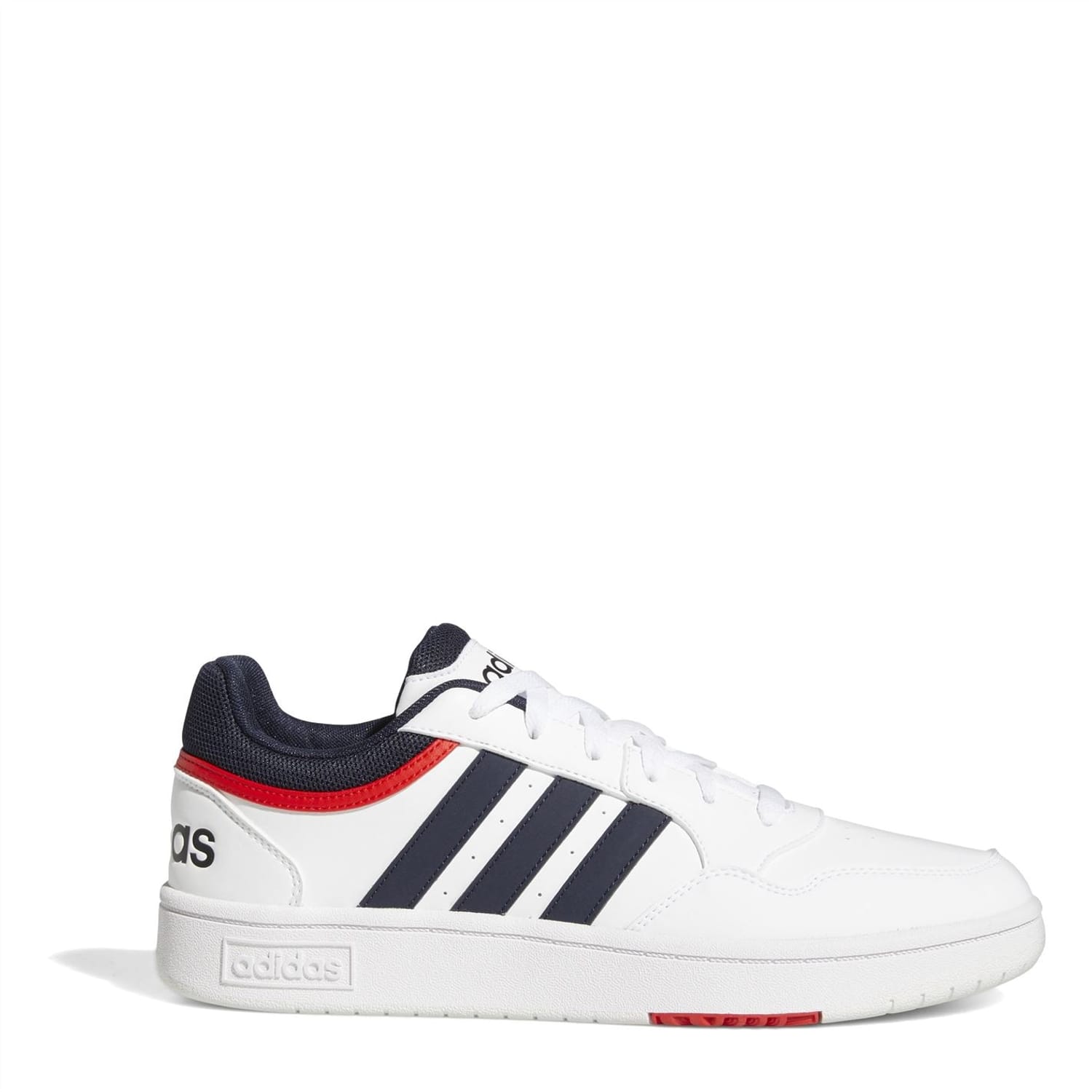 These adidas Hoops 3.0 Trainers are crafted with lace fastening and a padded ankle collar for a secure fit. They feature a cushioned insole for comfort and a chunky sole for grip. These trainers are designed with the iconic three stripes plus the adidas logo and are complete with adidas branding. -