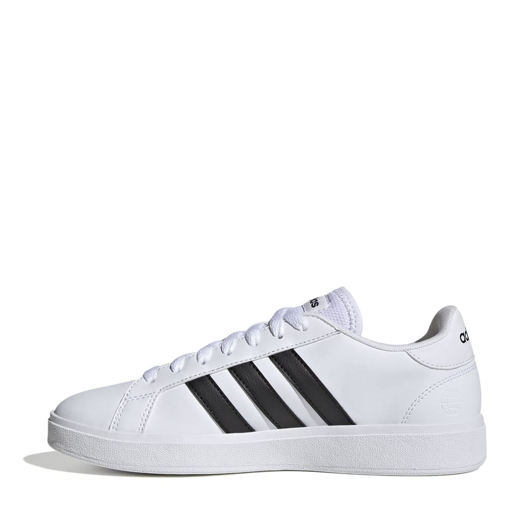 Sneakers with staying power. The adidas Grand Court shoes have been around since the '70s. Once you've upgraded to the revamped version of the classic, they'll never be far from your feet. The 3-Stripes add a sporty spin to any outfit. Made with a series of recycled materials, this upper features at least 50% recycled content. This product represents just one of our solutions to help end plastic waste. -