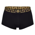 Refresh your underwear collection with this Two Pack Of Greca Waistband Trunks from Versace Icon. Crafted in Italy from a soft Cotton, this pack of two is designed with an elasticated waistband that features contrasting signature branded detailing, cut in a classic trunk silhouette. Size selection: Fits true to size, take your normal size. Composition: 94% cotton, 6% elastane. Hand wash only. Keep away from fire. -