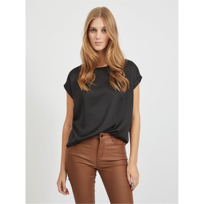 Refresh your casual wardrobe with the Vila Ellette Top, featuring a lightweight construction with a round collar and short cap sleeves, finished off with a solid colour block design and the Vila branding. -