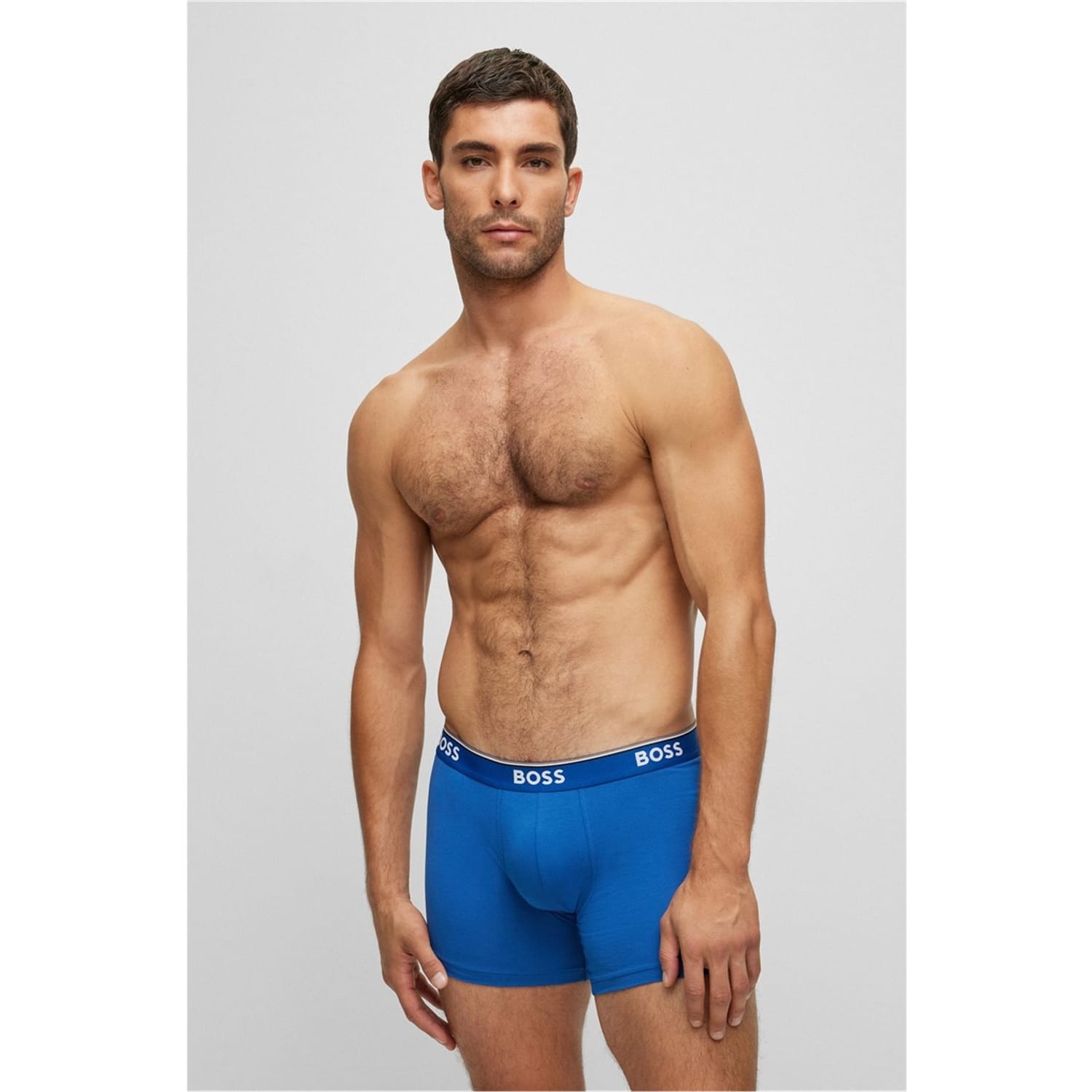 The Boss 3 Pack Boxer Shorts are a great addition to your everyday accessories. Crafted in a soft cotton/elastane mix material, these boxer shorts are cut in a mid rise and feature an elasticated trim to the waistband coupled with flat lock stitching that ensures all day comfort. Designed in a solid colouring along with the Boss branding to the waistband for brand recognition. 95% Cotton, 5% Elastane. Machine washable at 30 degrees, follow care label instructions.
