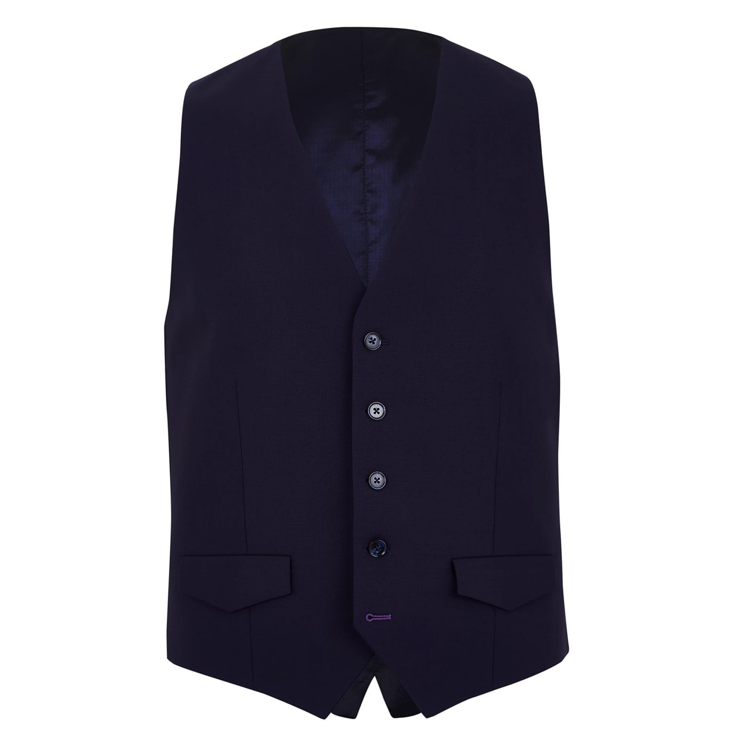 Create a sophisticated and classic formal look with the Kilburn Waistcoat by Without Prejudice, crafted from a wool blend for a more comfortable design. This waistcoat has been shaped to a slim fit for a flattering silhouette, the waistcoat features a five button front, slanted welt front pockets with flap closure, and a sleek contrast reverse complete with a handy buckle adjuster. Combine with the matching jacket and trousers to complete a suave three piece ensemble. -
