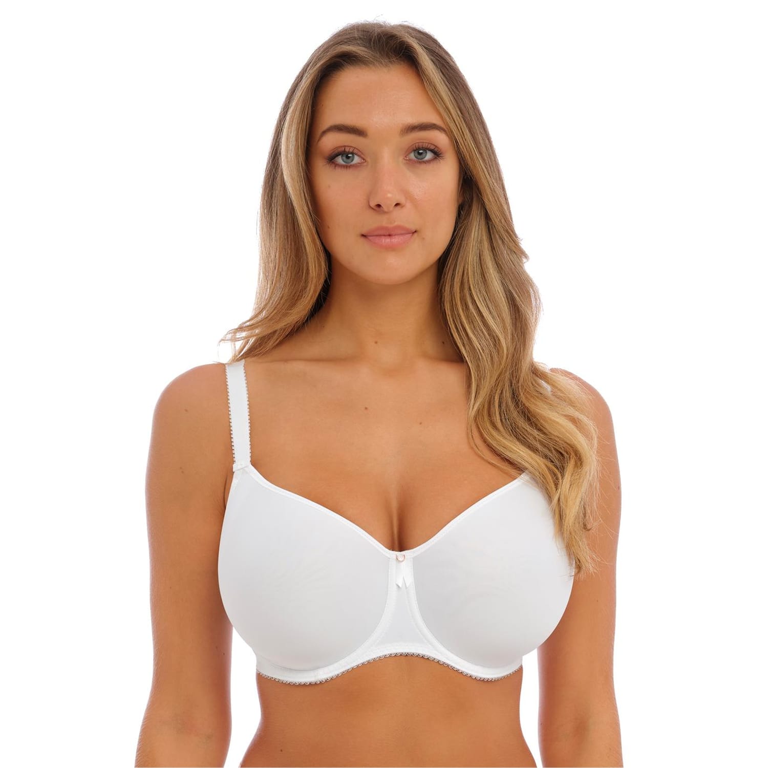 Simple, sophisticated and elegant the Rebecca Essentials is a must have lingerie drawer staple packed with everyday wearing comfort features. The bra features smooth cups and a plain cradle combined to offer a smooth silhouette under clothing. The modern elastics along the neck edge and back help with fit and give a chic and refined look. Based on our best selling Rebecca style, the cups are made from a lightweight and breathable fabric that offers great shape and fit with full breast coverage in the cup without adding volume to your shape. The wide wire provides additional comfort and support with flexibility at neck edge and underarm for ease of fit. The innovative, centre pull straps help prevent strap slippage. The straps are fully adjustable and soft with a soft peach skin on the skin teamed with a soft hook and eye for ultimate comfort. Finished with a ribbon detail in the centre front a cute metal trinket. Available in a variety of colours, which coordinates back with -