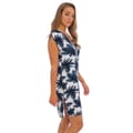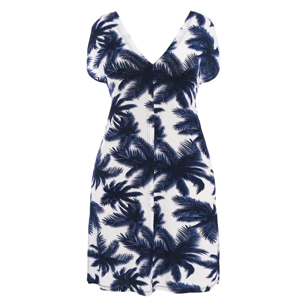 Featuring a shadow leaf palm print design in navy on a crisp white ground, Carmelita Avenue is inspired by a palm tree-lined Beverley Hills street. The Tunic has a flattering V-shape at the front neckline, with cap sleeves and a tie and bead detail at the back. Made from a lightweight soft handle stretch jersey fabric for comfort in wear. Mid length styling with elegant side splits for ease of movement. Metallic gold trim detail on tie ends to complete the look. Pair back with the matching Carmelita Avenue bikini set or swimsuit. -