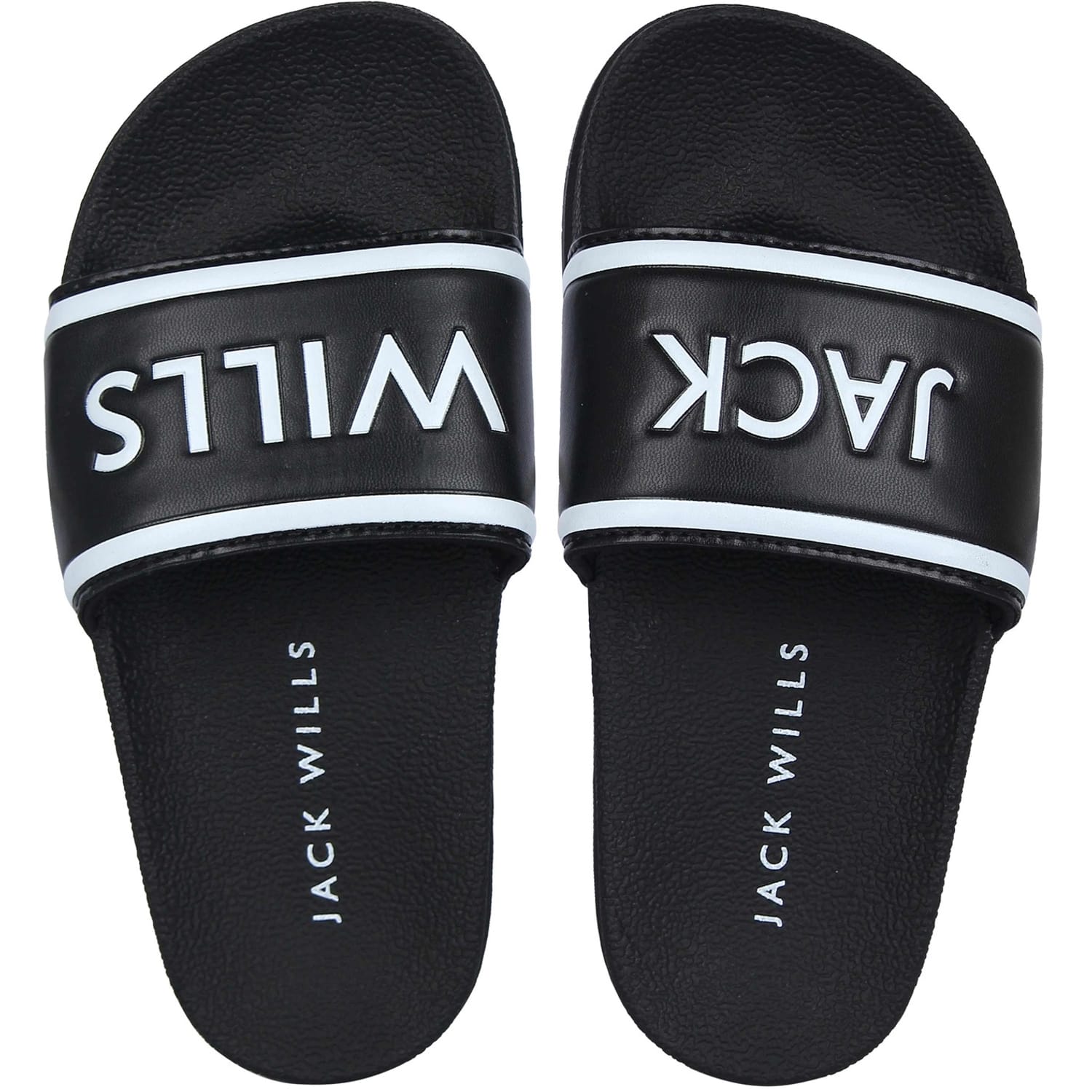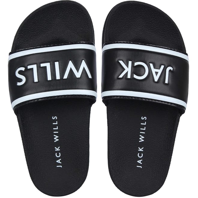 Refresh your collection with these Jack Wills logo sliders. Constructed in a slip on style with a wide padded foot strap and a contoured foot bed. These sliders are designed with the signature branding and are complete with Jack Wills branded sole. -