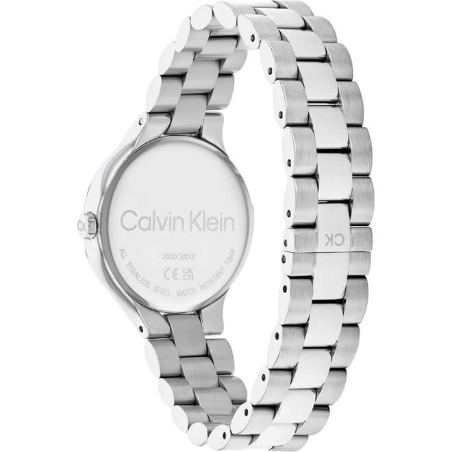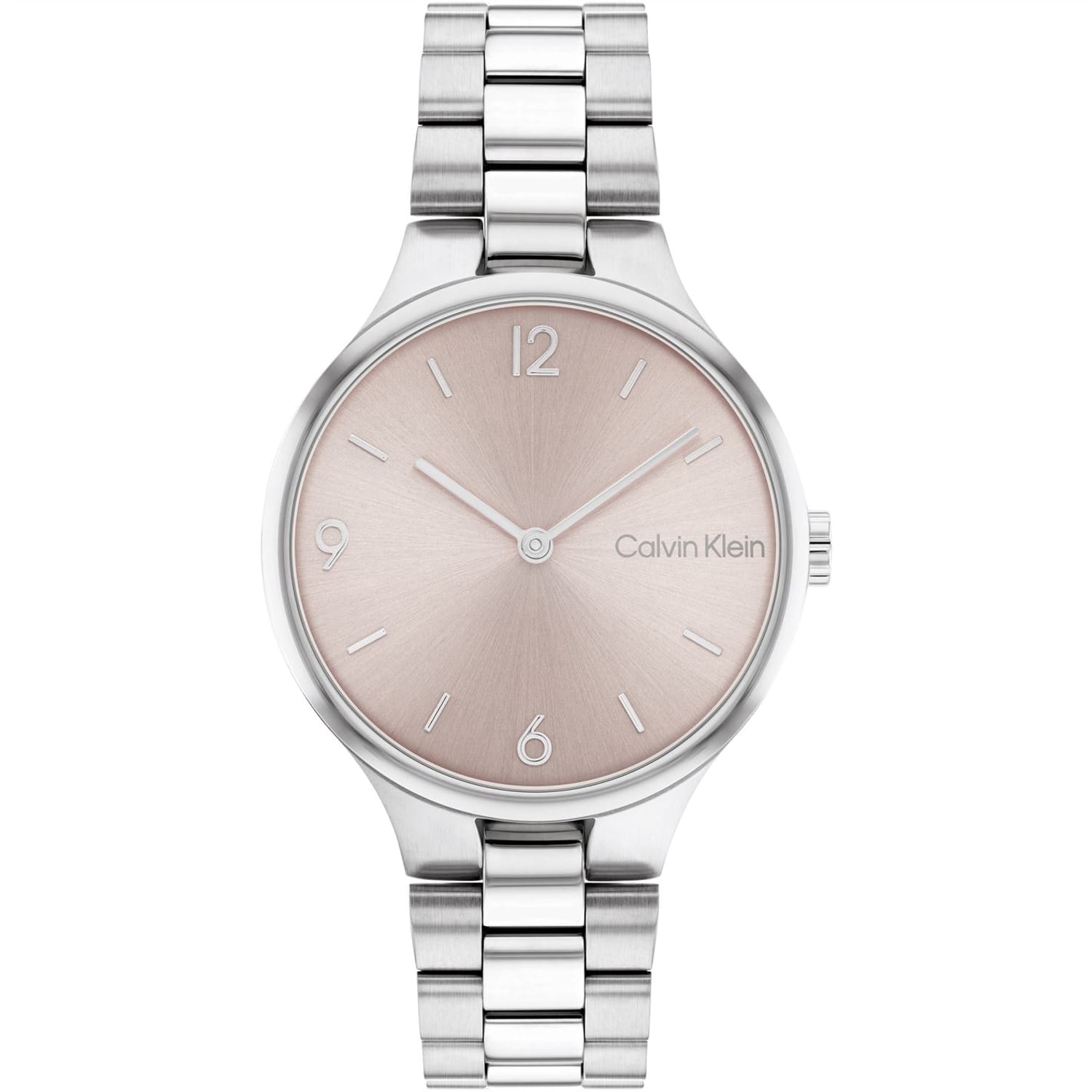 Ladies watch from Calvin Klein. Featuring a 32mm round stainless steel case, blush sunray dial and finished on a three link bracelet.