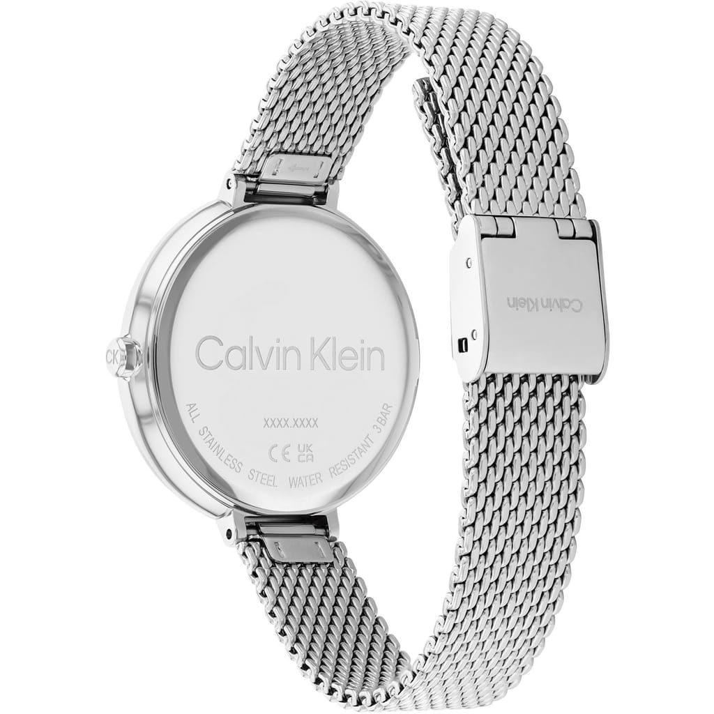 Ladies watch from Calvin Klein. Featuring a 36mm stainless steel case, white sunray dial finished on a stainless steel mesh bracelet.