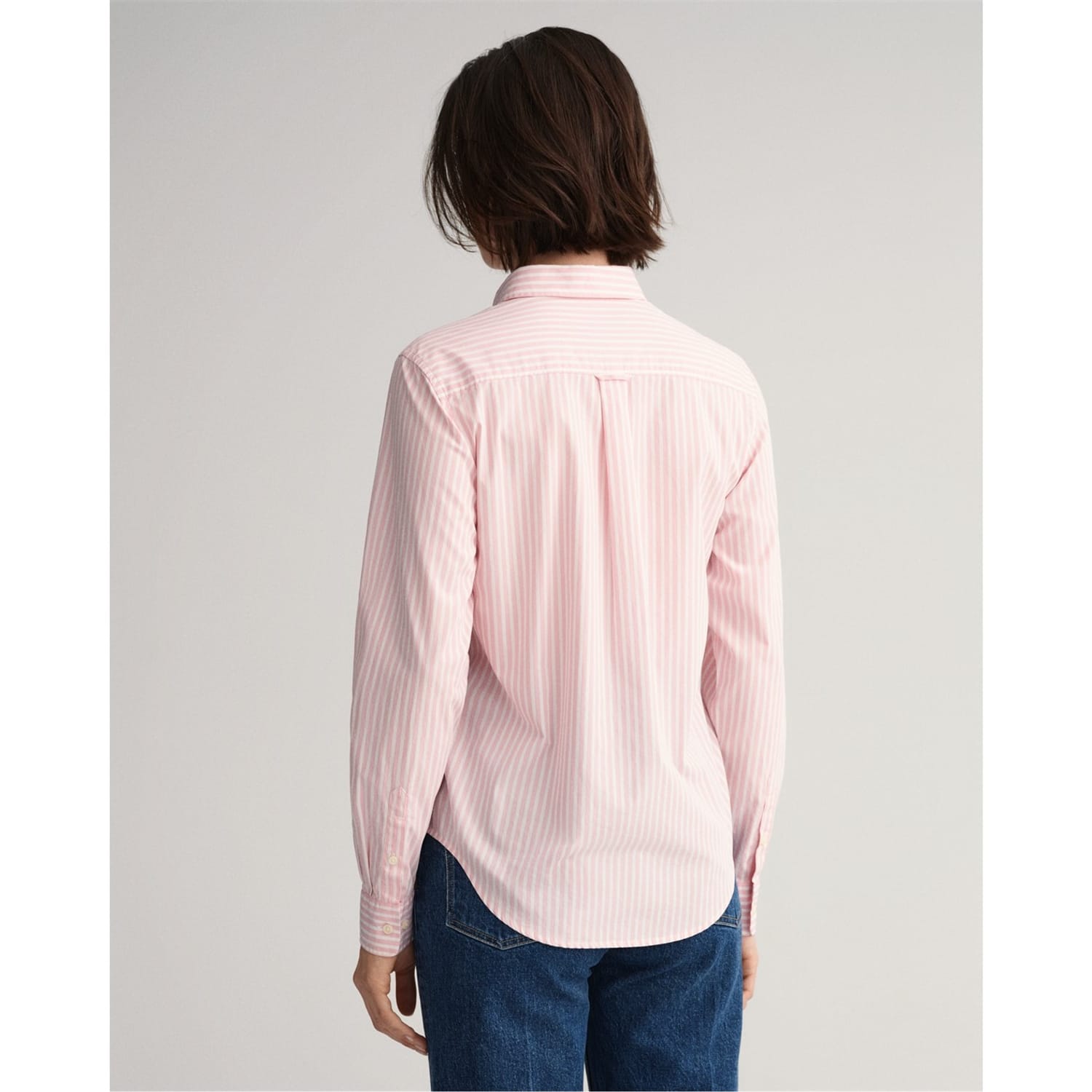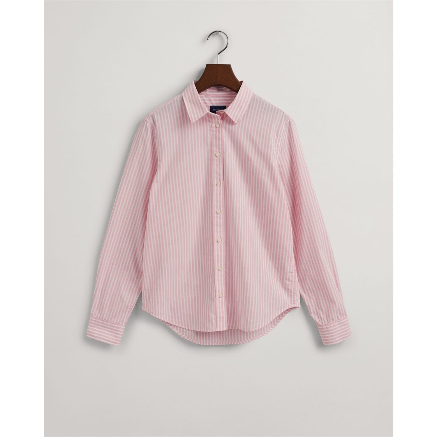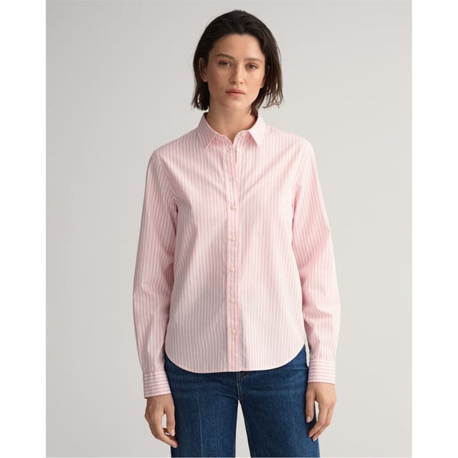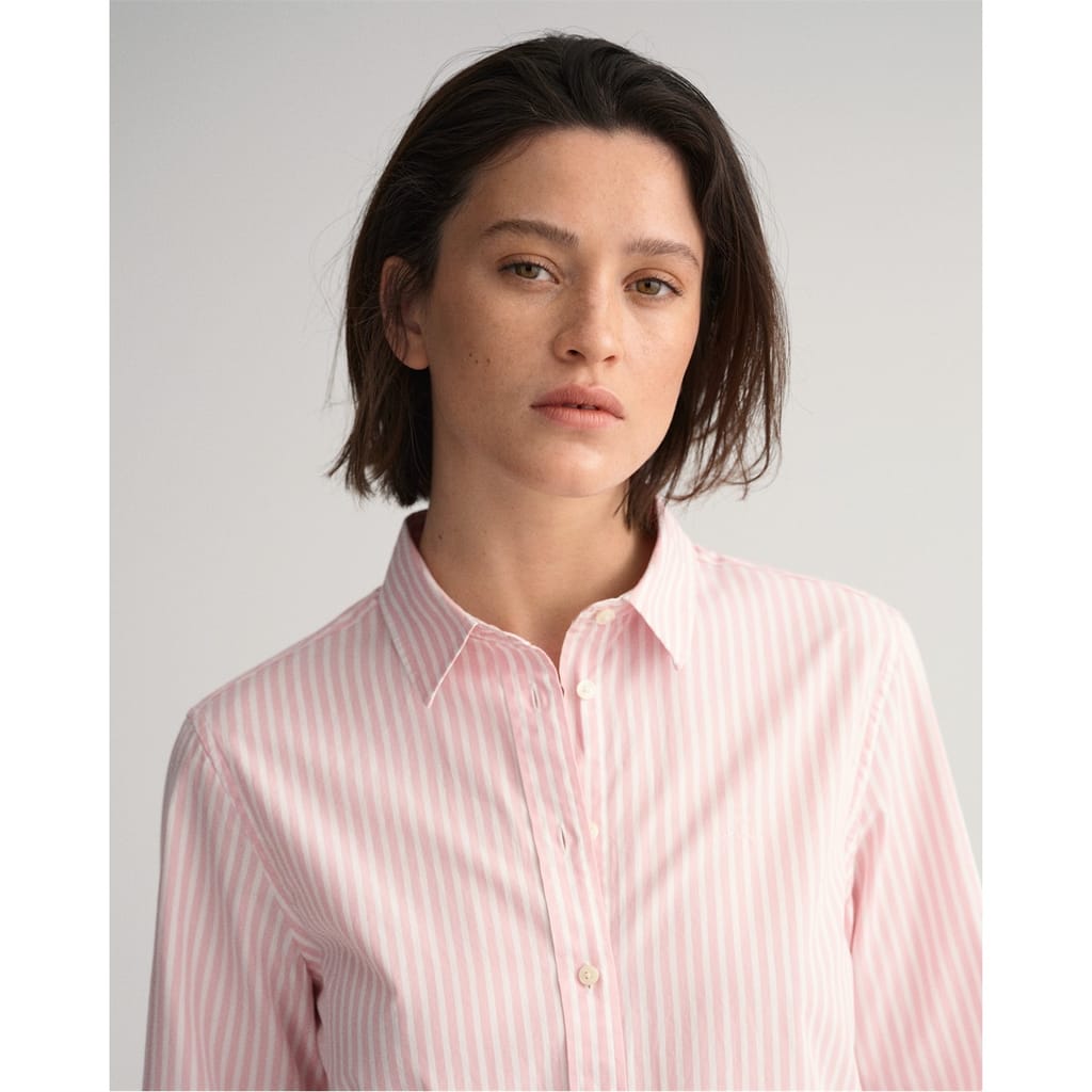 Update your collection with this Gant Regular Broadcloth Shirt. Crafted with a folded collar and full button fastening for a secure fit, it features long sleeves with button cuffs for a classic look. This shirt is a stripe design with a signature logo and is complete with Gant branding. -