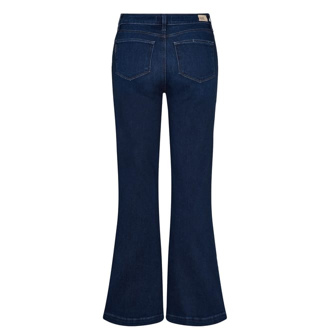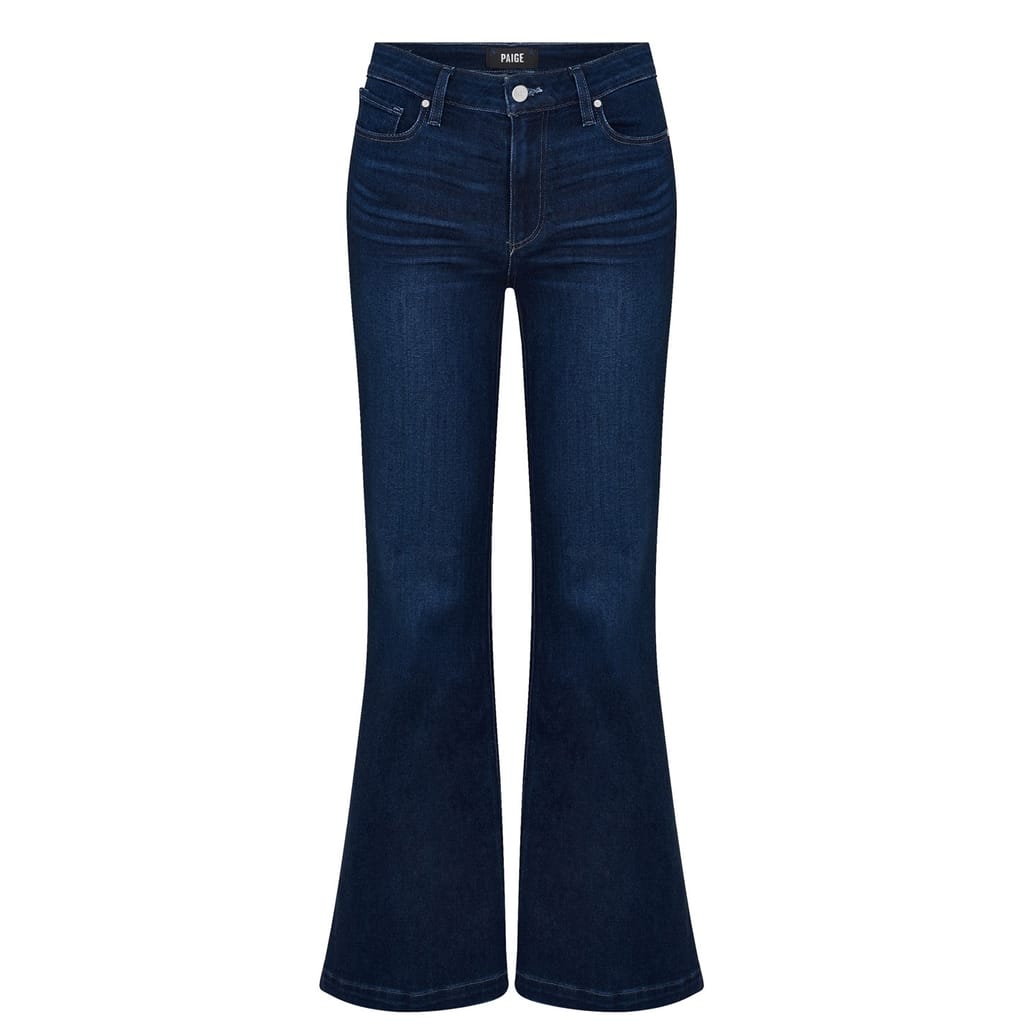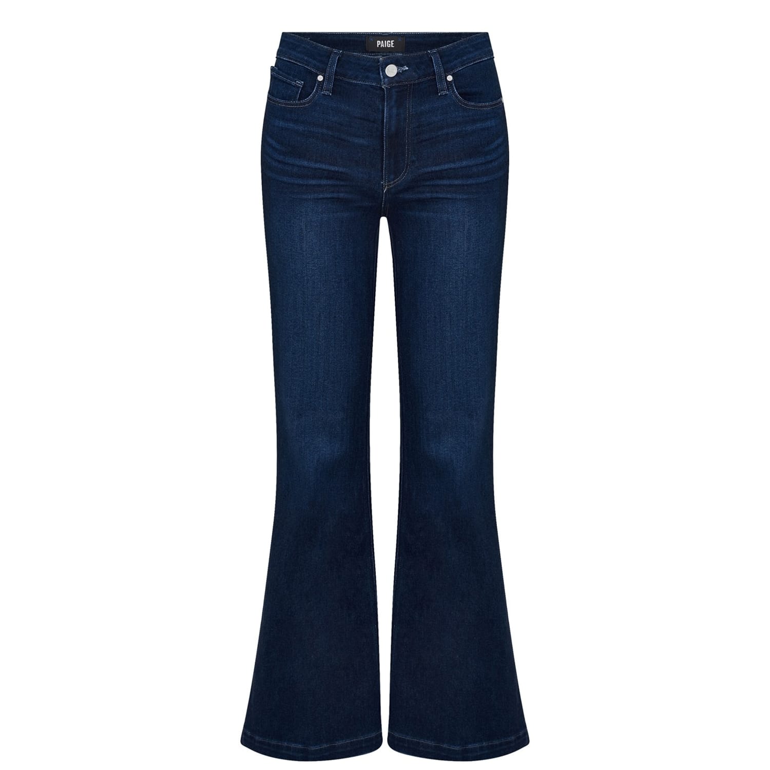 Add a 70's inspired pair to your denim collection with the Genevieve Flared Jeans fromPaige. Cut with a high rise waist and slim fit, this pair is made from a stretch blend cotton for a comfortable wear. In a classic five pocket stitch with a flared hem, this pair is finished with the Paige logo patch to the back of the waist for a high end appeal.