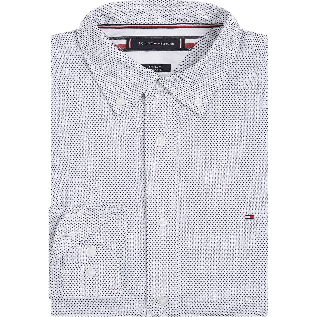 Elevate your everyday ensemble with this eye-catching Core flex mini Geo Print Shirt. Expertly crafted from organic cotton for a breathable, lightweight feel this look exudes luxury, effortlessly elevating your essentials collection. Offering long sleeves with double button cuffs for a suave appeal, buttressed by the shirt collar and timeless button down fastening this look is perfect as part of your office outfit. Designed in an all over mini geometric check print for an intricate appeal, punctuated by the iconic Tommy Hilfiger flag on the chest for a prestigious appeal that instantly achieves brand recognition. Cut to a regular fit, pair this shirt with smart trousers to complete the sophisticated look. Machine wash according to care instructions for best results. -