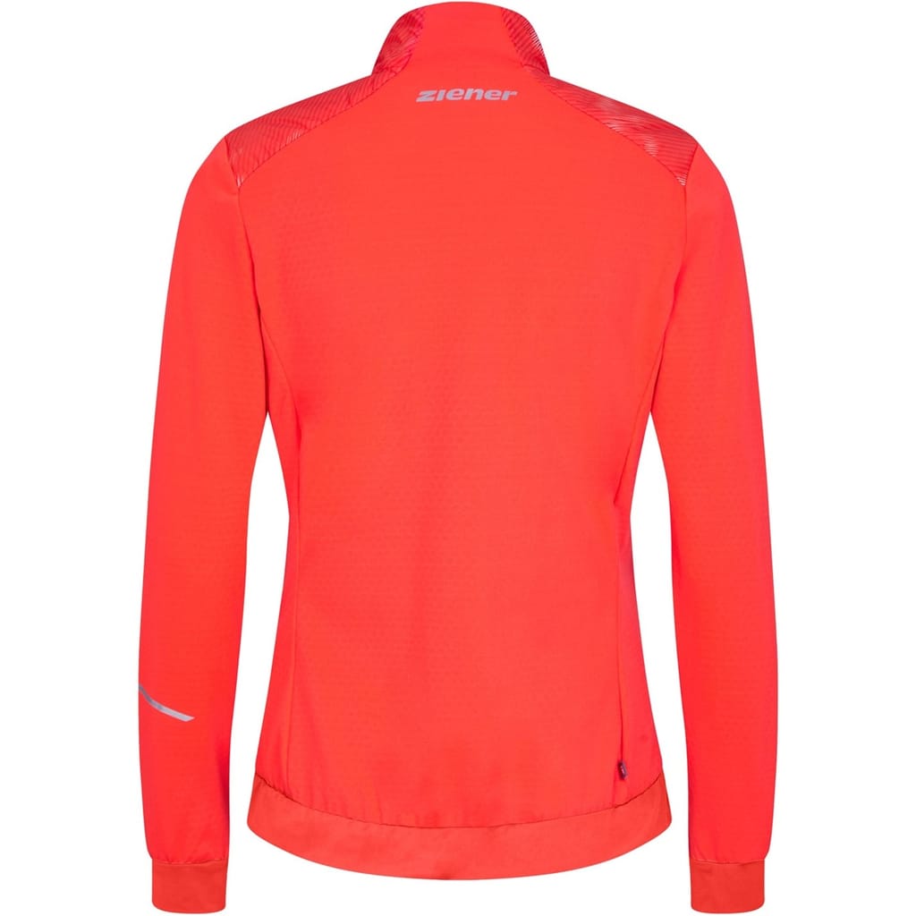 The Ziener softshell jacket is a perfect addition to your activewear collection. Designed in a solid pattern, this jacket features a high collar and a convenient zipper closure for easy wear. Its ribbed cuffs offer added comfort, while the regular fit ensures a classic silhouette. The jacket is accented with a logo, completing its sleek look. -