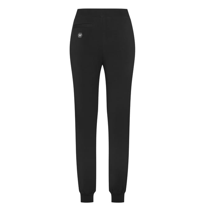 Elevate your casual collection with Philipp Plein joggers. These solid joggers feature a logo and back pocket embellishment, along with a convenient drawstring closure. Perfect for a relaxed, regular fit, they blend style and comfort effortlessly. -