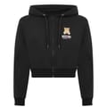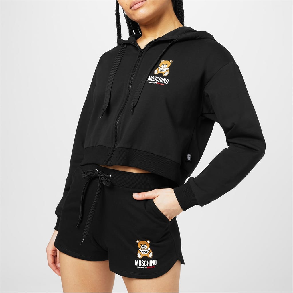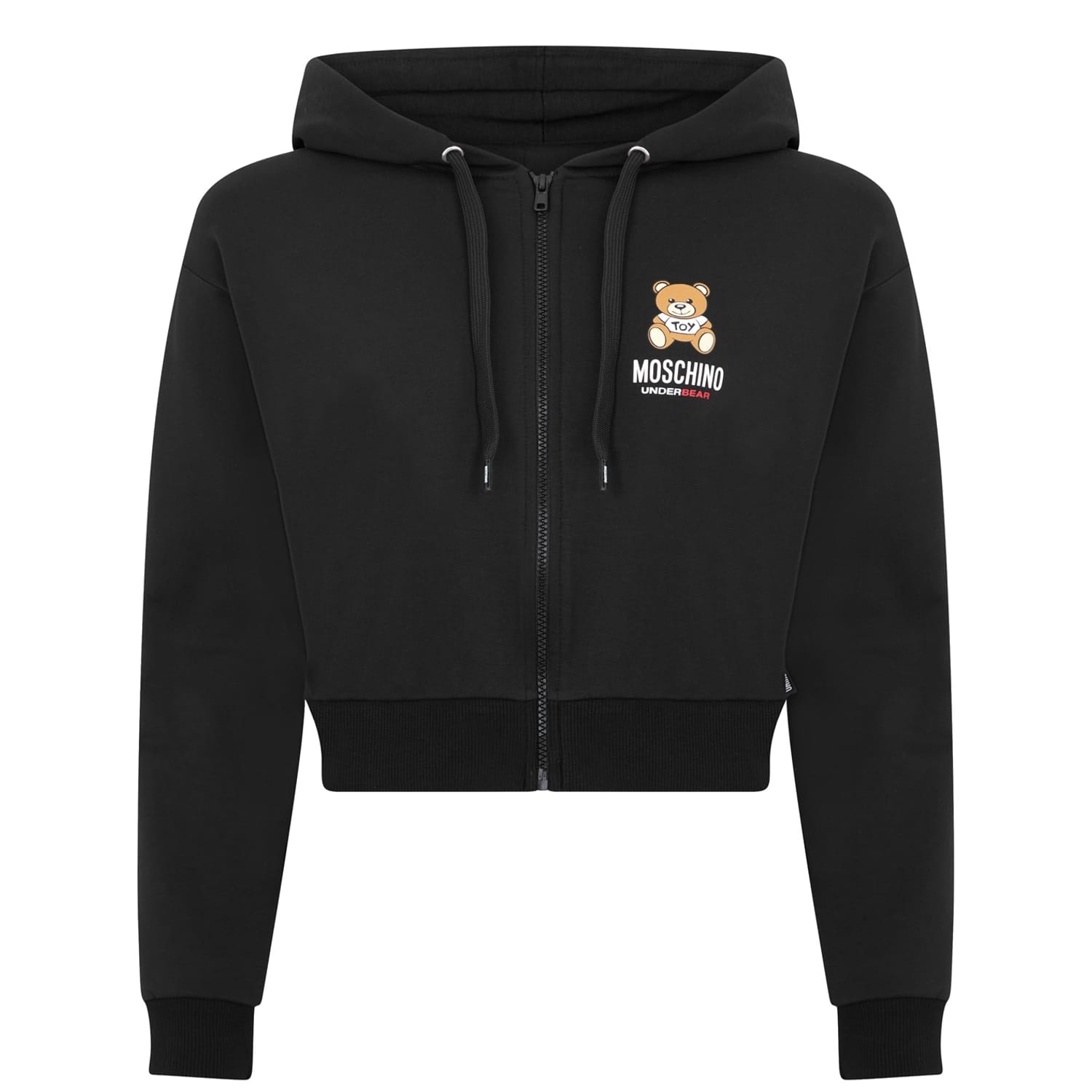 With a casual aesthetic, the Moschino Bear Zipped Hoodie has been crafted from a soft cotton fabrication styled with a smooth fleece lining for added comfort and warmth. Boasting a staple block colourway all-over for a minimal appeal, this garment offers a drawcord hooded neckline secured with a full zip fastening, long sleeves, a straight hemline and ribbed trims to the cuffs and hem for a secure fit. The look is signed off with a contrasting Moschino bear printed graphic to the chest for a designer stamp. Outer: 92% cotton, 8% elastane. Lining: 100% cotton. Machine washable at 30 degrees.