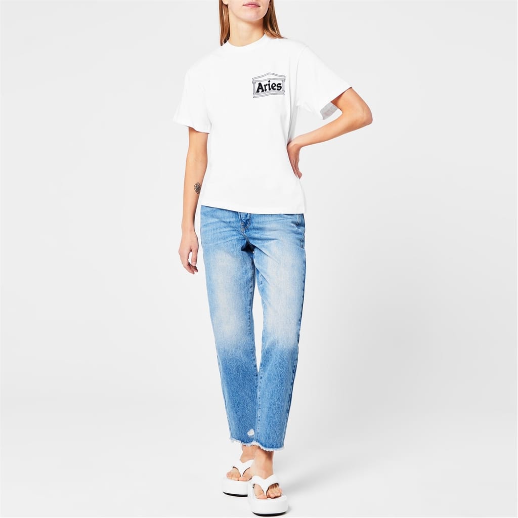 - The solid block colouring delivers an exceptional foundation to style this ladies' t-shirt into any ensemble, making it a versatile addition to your wardrobe. No Aries design is complete without its signature Temple branding on the chest, featuring the label's lettering for instant brand recognition. Whether you are meeting friends for brunch or relaxing at home, Aries' Temple T-Shirt is the perfect way to elevate your look.