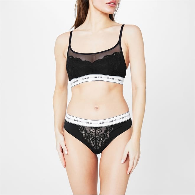 Add a feminine touch to your everyday accessories with the Guess Belle Thong, crafted with an elasticated trim to the waistband along with flat lock stitching for all day comfort. Lace detail to the front gives a simple feminine style, finished off with the classic Guess branding to the waistband. Machine washable, follow care label instructions. -