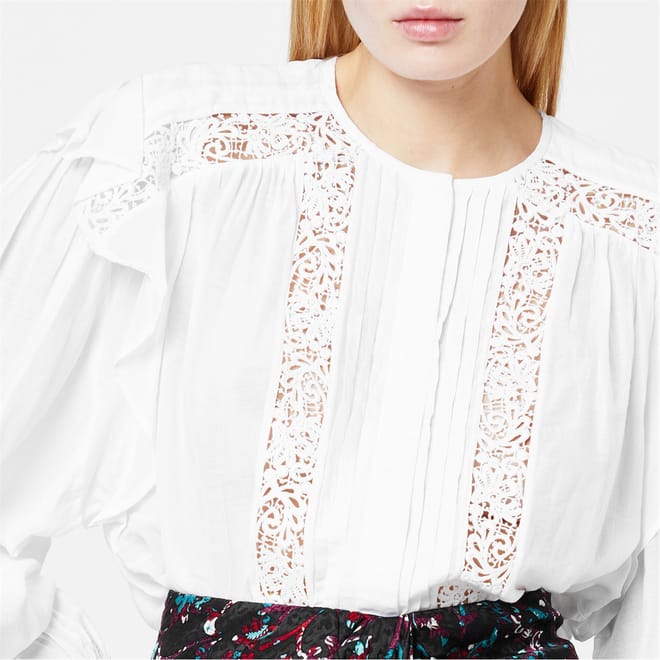 With a feminine allure, the Marant Etoile Georgina Lace Cotton Blouse is a cult staple in your day-to-evening collection. Crafted from a lightweight cotton fabrication styled with embroidered lace details to the body and shoulders, this blouse offers a classic crew neckline with a concealed button fastening while the puff sleeves create a playful finish. Pair with denim shorts and sandals during the summer or leather trousers and ankle boots during those autumnal months. Composition: 67% Cotton, 33% Viscose.