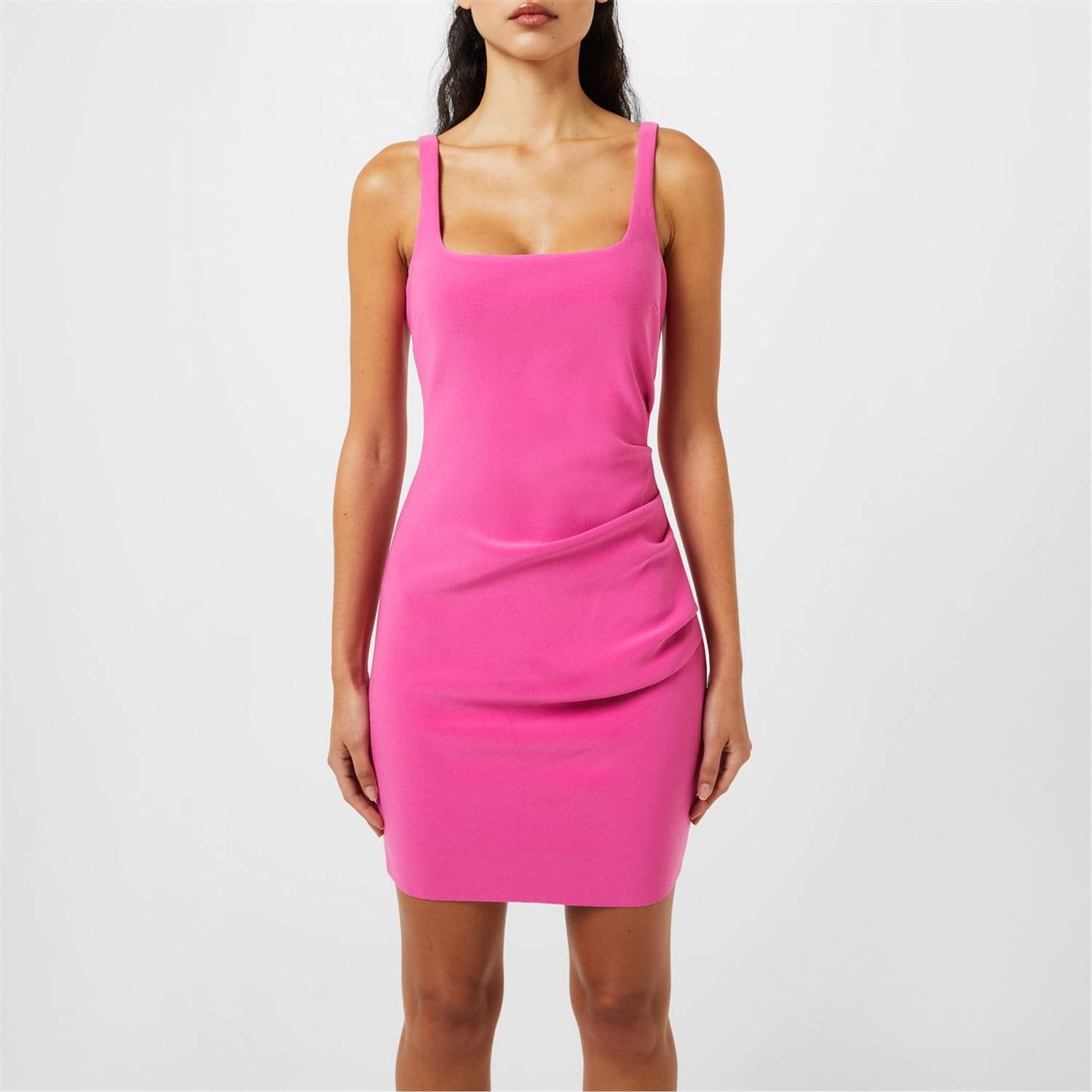Refresh your wardrobe with the Karina Mini Dress from Bec-and-Bridge. Designed with a squared neckline framed by thin shoulder straps, this dress is cut to a mini length to create a chic and flattering silhouette. Made from a stretch bonded crepe in a slim fit, this dress is finished with a gathered detail to the waist.