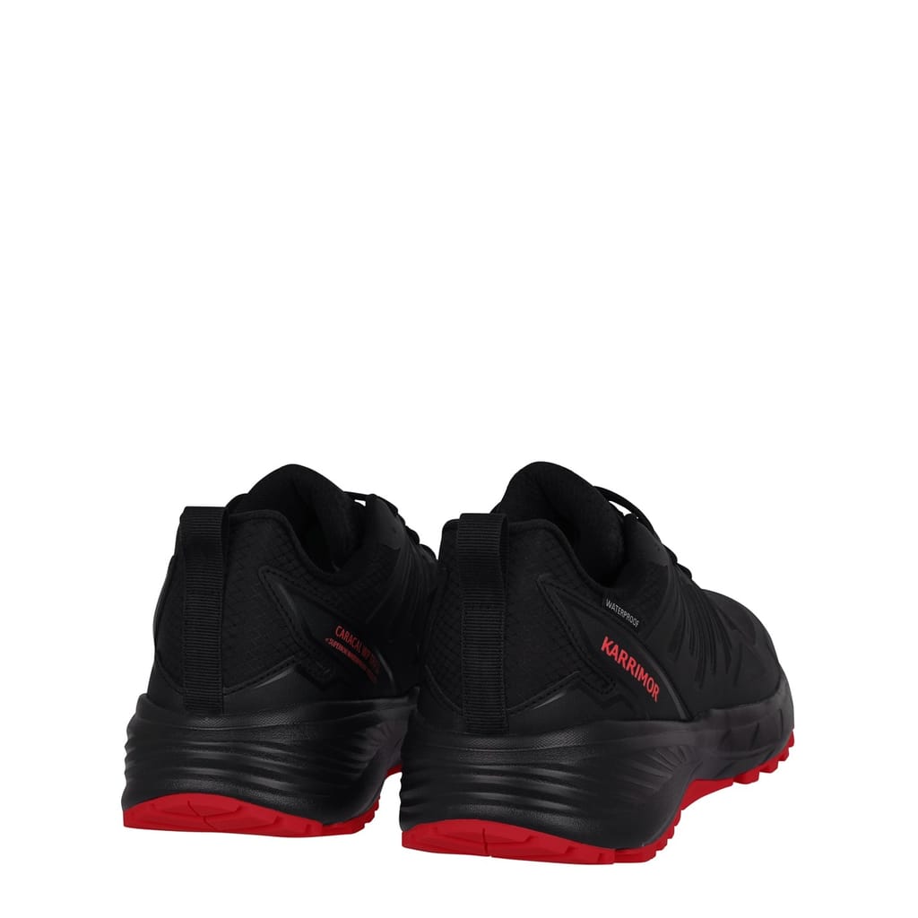 The Karrimor Caracal WP Trainers are perfect for hitting the trails, with the waterproof membrane protecting you in all conditions. The lightweight upper cage locks the foot into a secure position whilst the Ortholite insole provides extra cushioning that you can trust to maximise your comfort experience. The EVA midsole offers a lightweight ride with smooth transitions for every step. A Dynagrip rubber outsole offers a high level of traction, so you feel confidence with every step on all surface types. -