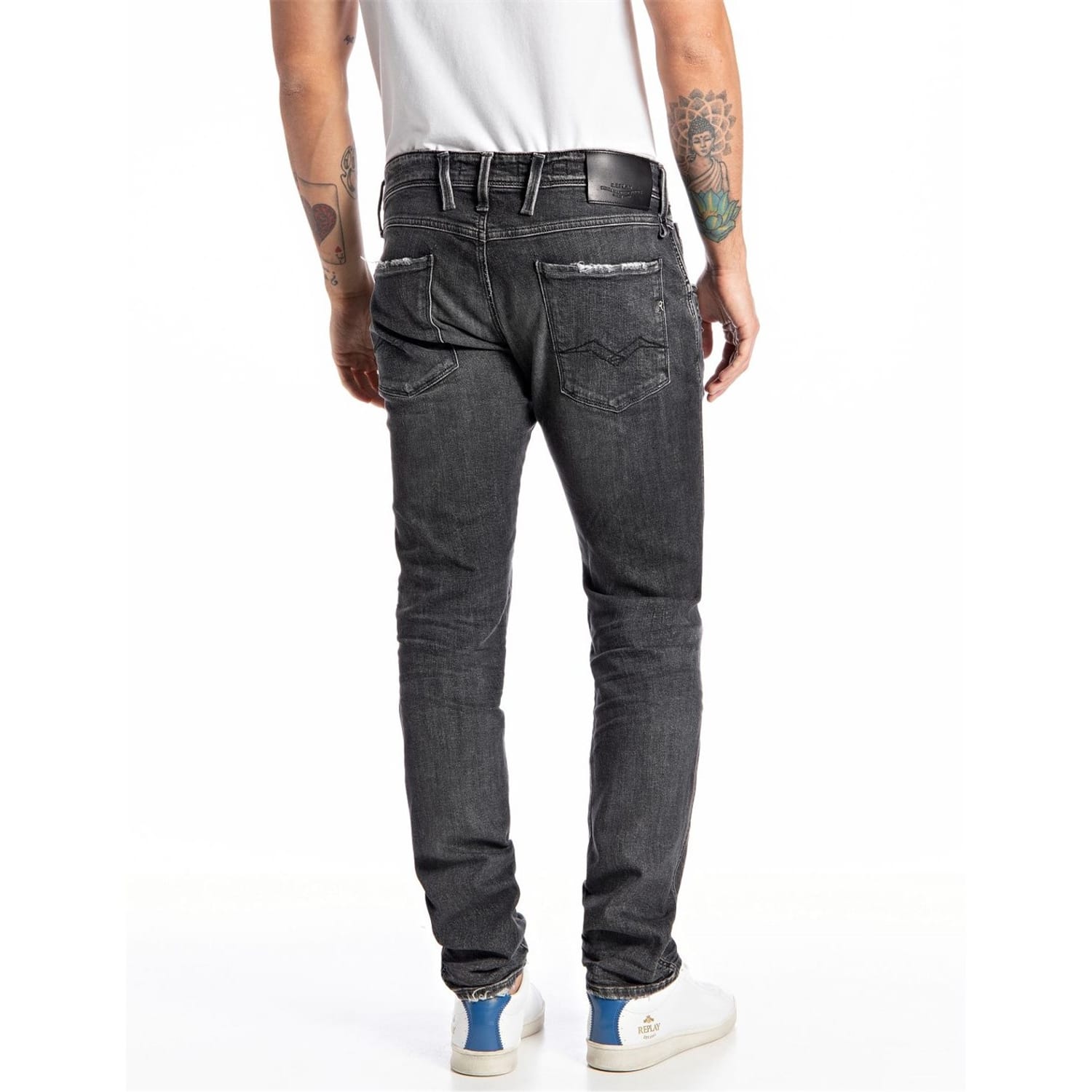 Crafted from a soft cotton blend Powerstretch fabric, these jeans are cut in Replay's signature Anbass slim fit and feature a zip fly with button fastening for maximum comfort, belt loops and a five pocket design for a classic style. The look is finished with the signature brand labelling patch to the rear for brand recognition. These jeans pair well with a polo t-shirt and trainers for a dynamic outfit. 90% Cotton, 8% Polyester, 2% Elastane. Machine washable at 30 degrees.