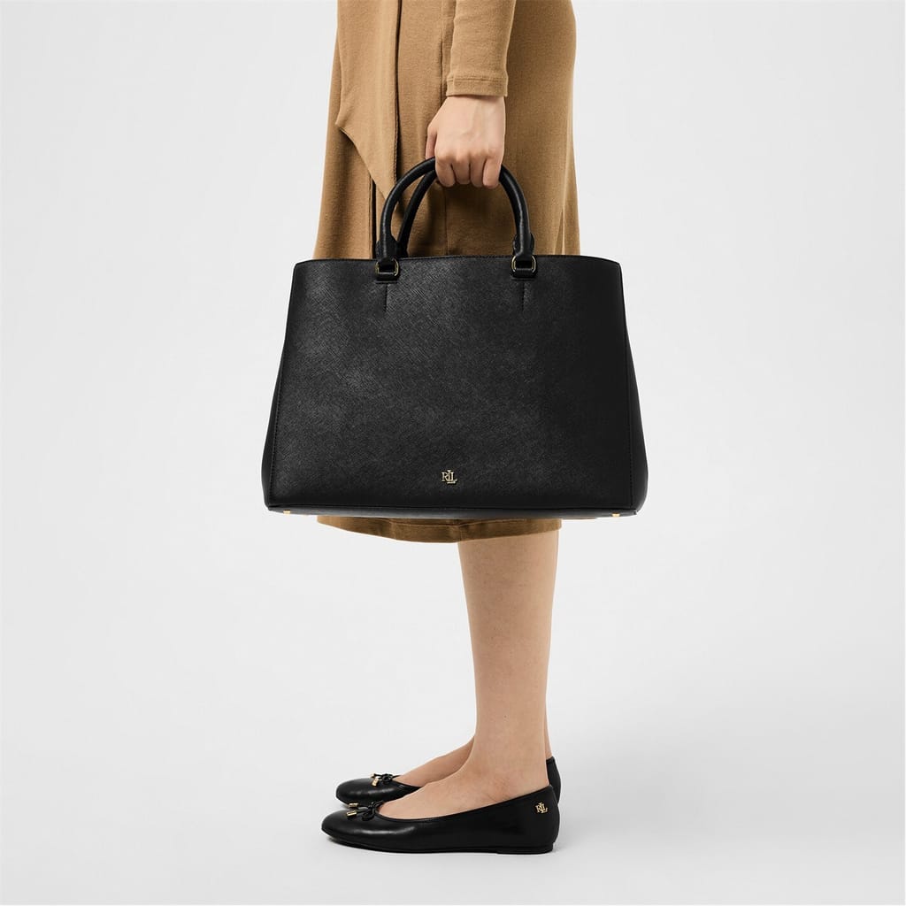 Whether you wear it to work or while running errands, the large Hanna satchel features a sleek, spacious silhouette with a myriad of pockets for storing your necessities. Punctuated with a polished “LRL” logo, this style is rendered in crosshatch leather for subtle texture and a sophisticated sensibility. -