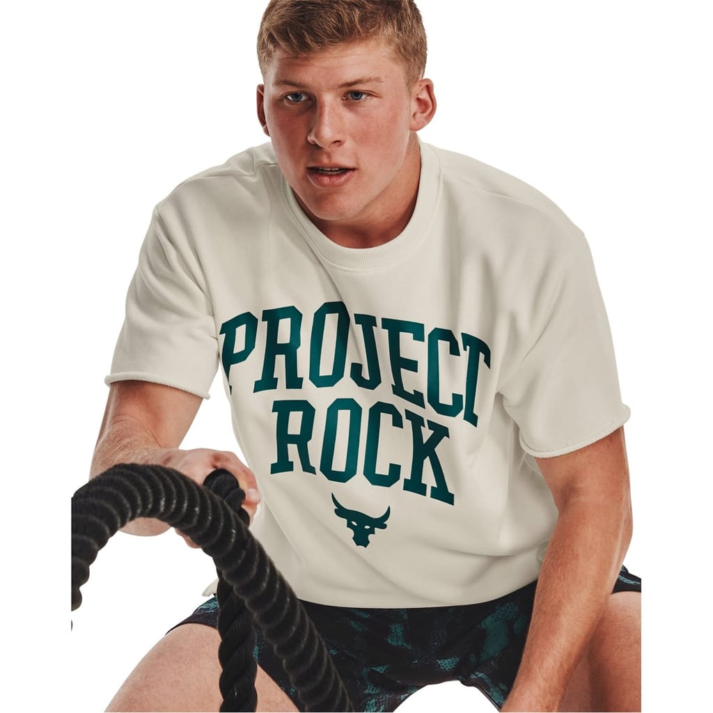 Under Armour terry t-shirt features a crew neck and short sleeves, ideal for spring and summer. The solid pattern and relaxed fit ensure comfort, while the logo adds a stylish touch. -