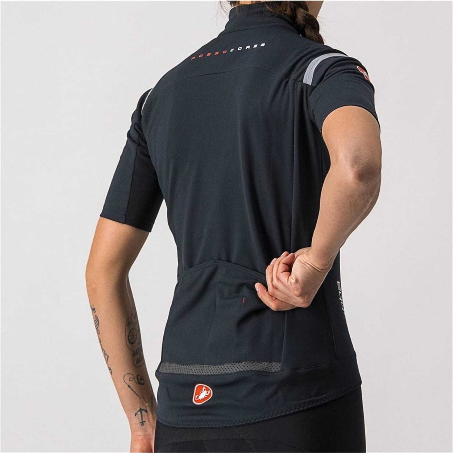 -The rear of the Gabba has two pockets with an integrated pump sleeve, providing easy access even with gloves on or when flying along at race pace. A dropped tail provides some welcome coverage from road spray whilst a reflective