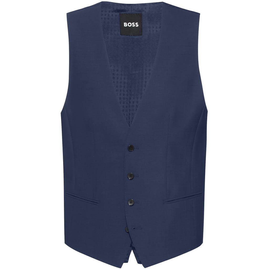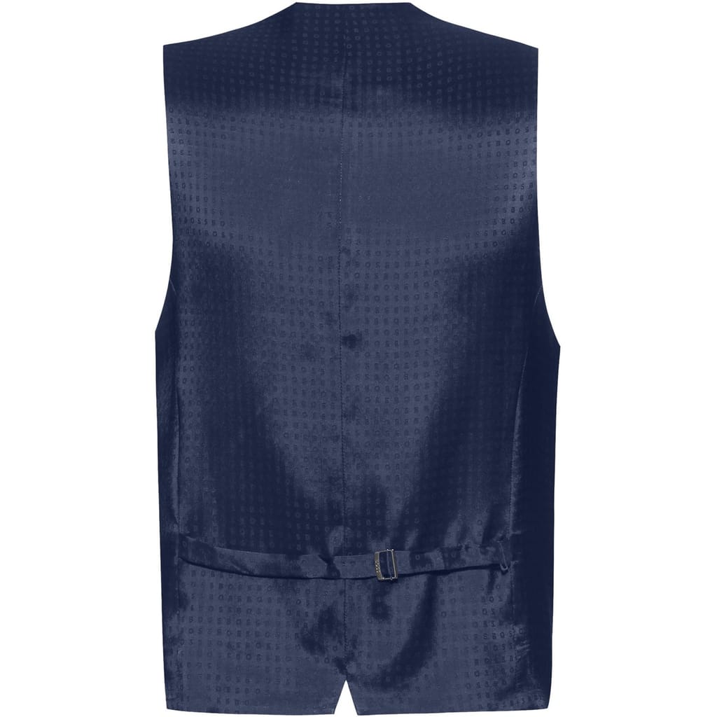 Precision tailoring defines this BOSS HBB Jasper Waistcoat. The slim-fit design creates a sleek shape, while practical welt pockets maintain its clean lines. An adjustable back strap ensures a precise fit for special occasions.