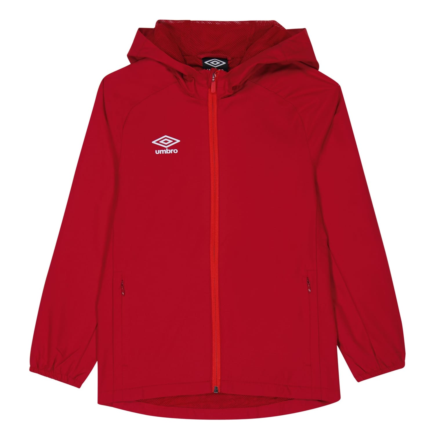 This Umbro windbreaker jacket is perfect for junior performance needs. Featuring a relaxed fit, solid pattern, and a hooded neckline, this jacket ensures comfort and style. The full zipper closure adds convenience, while the subtle logo embellishment provides a classic touch. -