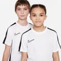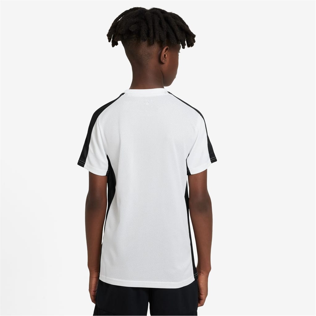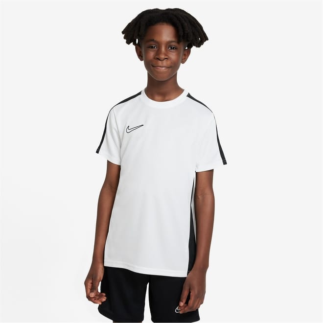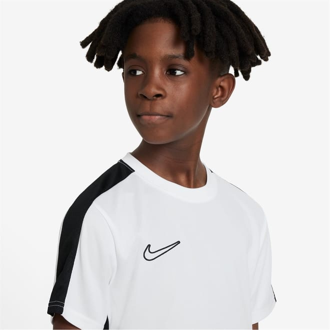 The Kids Nike Academy Top is a great addition to their training wardrobe, featuring a lightweight fabrication with a crew neck and short sleeves that offers a comfortable fit and DriFit technology helps wick sweat away from the skin to keep them dry and focused. A contrasting stripe to the side and sleeves along with the classic Nike Swoosh branding to the chest completes the look. Machine washable, follow care label instructions. -