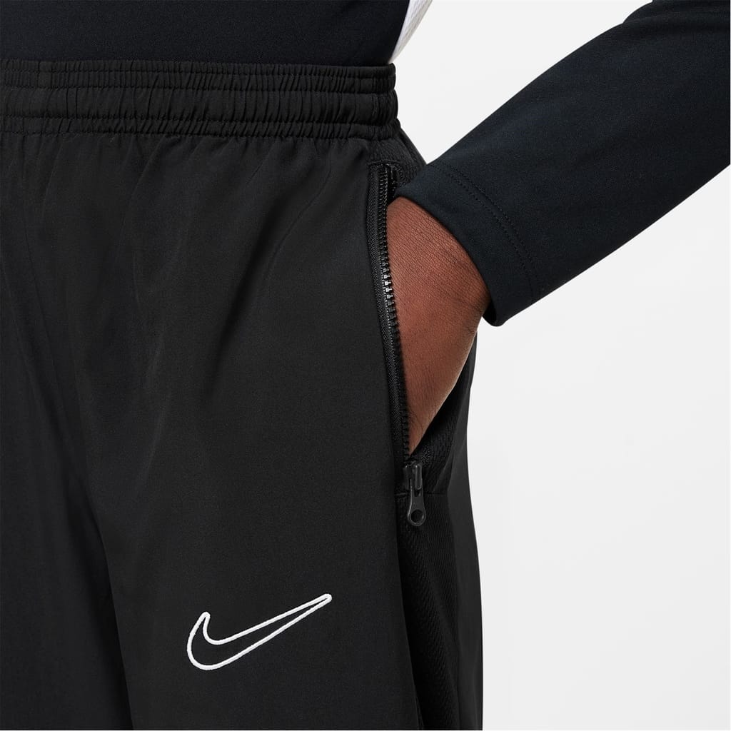 The Kids Nike Academy Training Pants are a great addition to their training wardrobe, crafted with an elasticated trim to the waistband and ankle cuffs along with flat lock stitching that ensures a comfortable fit. Dri-Fit technology helps wick sweat away from the skin so they stay dry and focused, slip pockets provides ample space for essentials and a solid colouring teamed with the Nike Swoosh branding completes the look. Machine washable, follow care label instructions. -