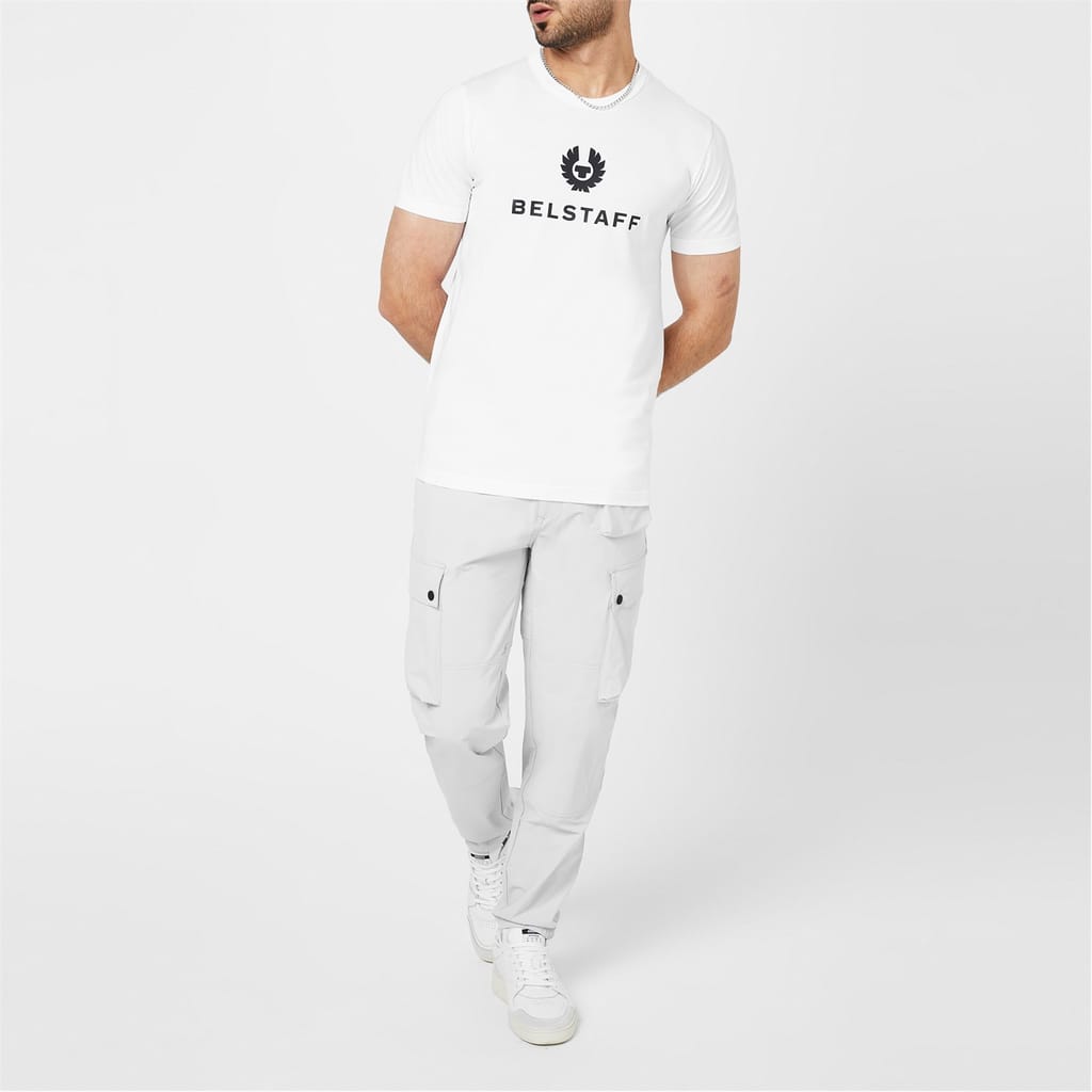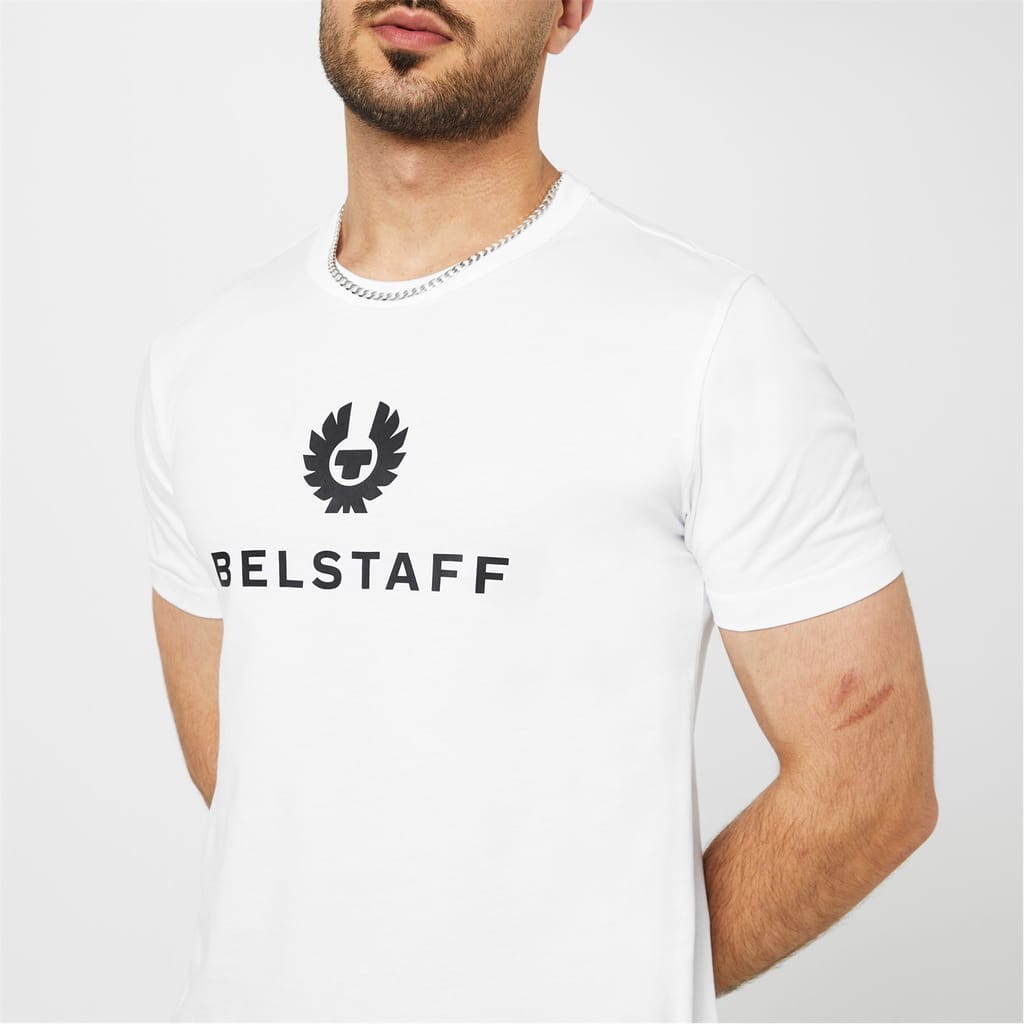 Established in 1924, Belstaff is celebrated for its passion for adventure and innovation- and has supplied apparel for some of the 20th century's greatest pioneers, including Chris Bonington, who, in 1977, became the first person to scale Baintha Brakk in Pakistan's Karakoram Mountain Range. This Signature T-shirt embodies the brand's spirited nature, skillfully made in a lightweight cotton jersey. A timeless design, this regular-fit piece boasts a classic ribbed round neck framed by short sleeves. A straight hemline and discreet tone-on-tone stitching complete the construction. Unencumbered with bold hues or striking prints, the solid block colouring provides an exemplary platform to style this piece into any ensemble, making this a versatile addition to any casual wardrobe. Finally, no Belstaff design is complete without the iconic Phoenix logo proudly displayed across the chest to ensure immediate designer recognition and high-end appeal. Machine wash at 30 degrees: Please refer