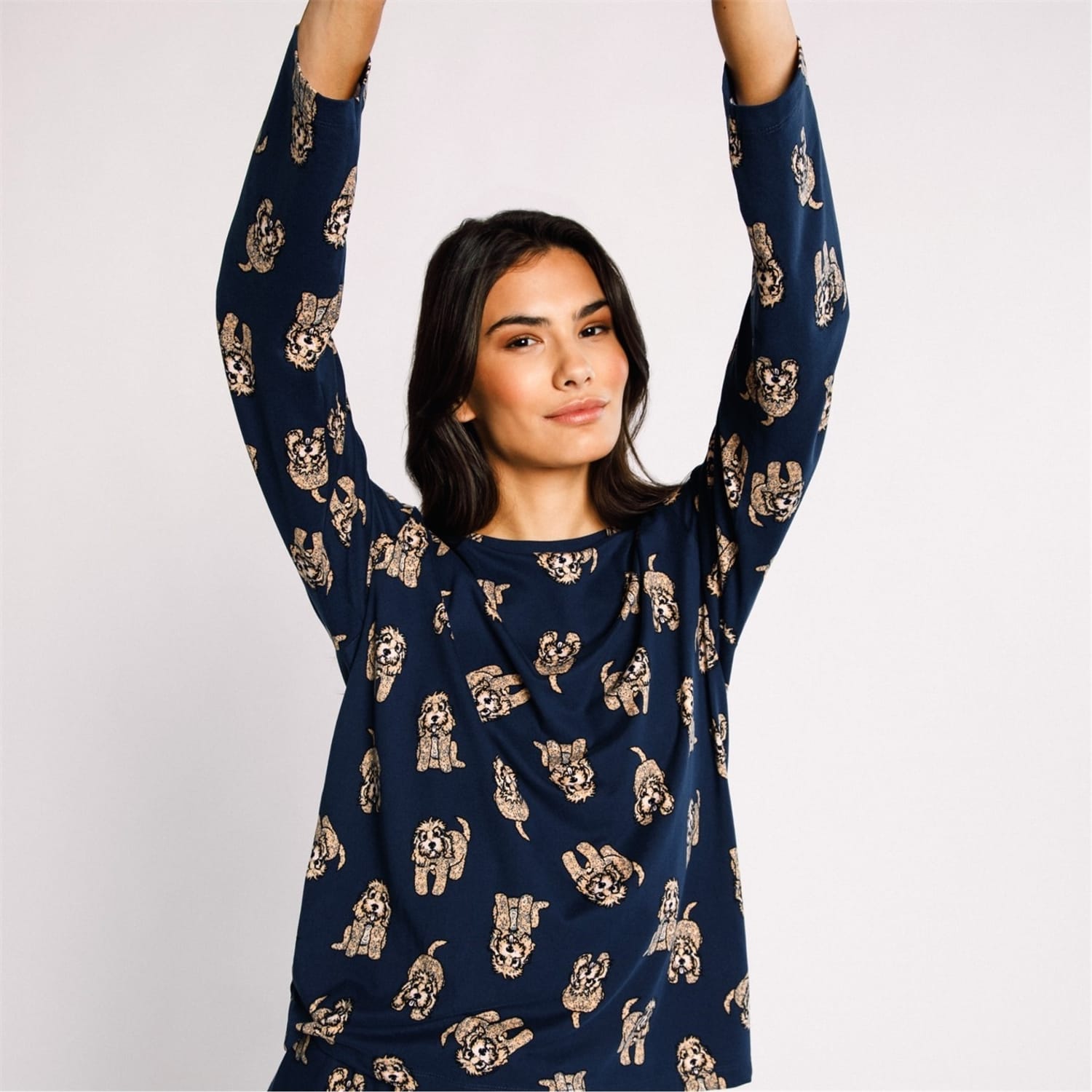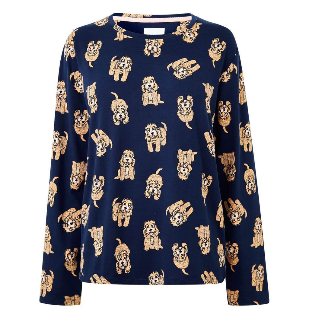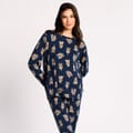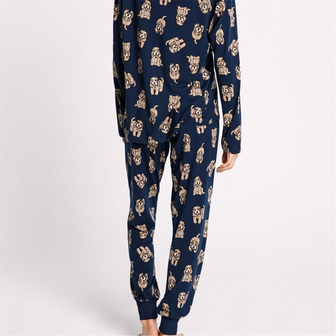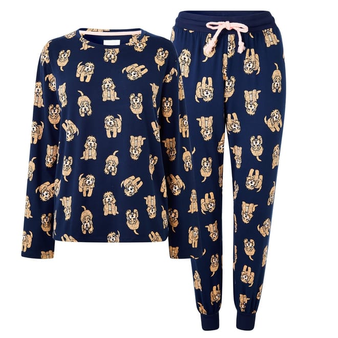 Sleep in unmatchable comfort while wearing the Chelsea Peers Classic Pyjama Set. Crafted in a lightweight, soft to touch and stretchable polyester/elastane mix fabric for ultimate night time wear, this top features long sleeves with a crew neckline, a straight hemline and elasticated trims whilst the bottoms feature an elasticated waistband with drawstring fastening and ribbed cuffs for comfort. Both items are finished with an all over printed design and the Chelsea Peers brand. 95% Recycled Polyester, 5% Elastane. Machine washable at 30 degrees.