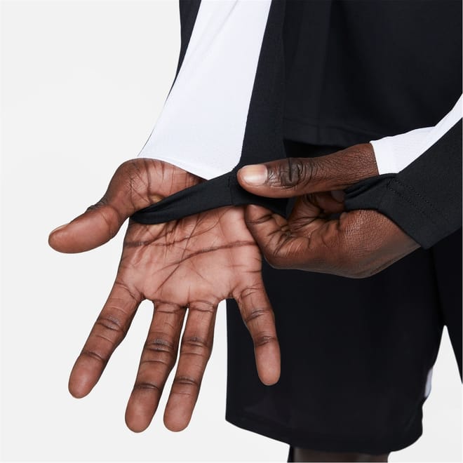 The Nike Dri-FIT Academy Men's Soccer Drill Top is a great addition to your training attire, crafted with a half zip fastening to the collar along with an elasticated trim to the wrist cuffs and hem that ensures all day comfort. DriFit technology helps wick sweat away from the skin to keep you feeling dry and focused, contrasting detail to the upper sleeves along with the Nike Swoosh branding completes the look. Machine washable, follow care label instructions. -