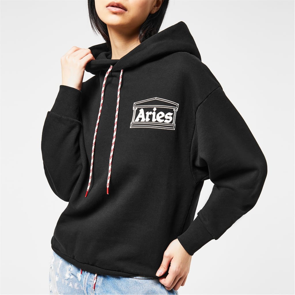Update your collection with this Temple Hoodie from Aries. Crafted from 100% cotton, this hoodie is constructed in a pullover style and features an adjustable drawstring hood with long sleeves, a straight hemline and ribbed trims for a comfortable wear. Decorated in a solid colouring throughout, the look is finished with the brand's iconic temple logo printed to the chest for instant brand appreciation. Machine washable at 30 degrees.