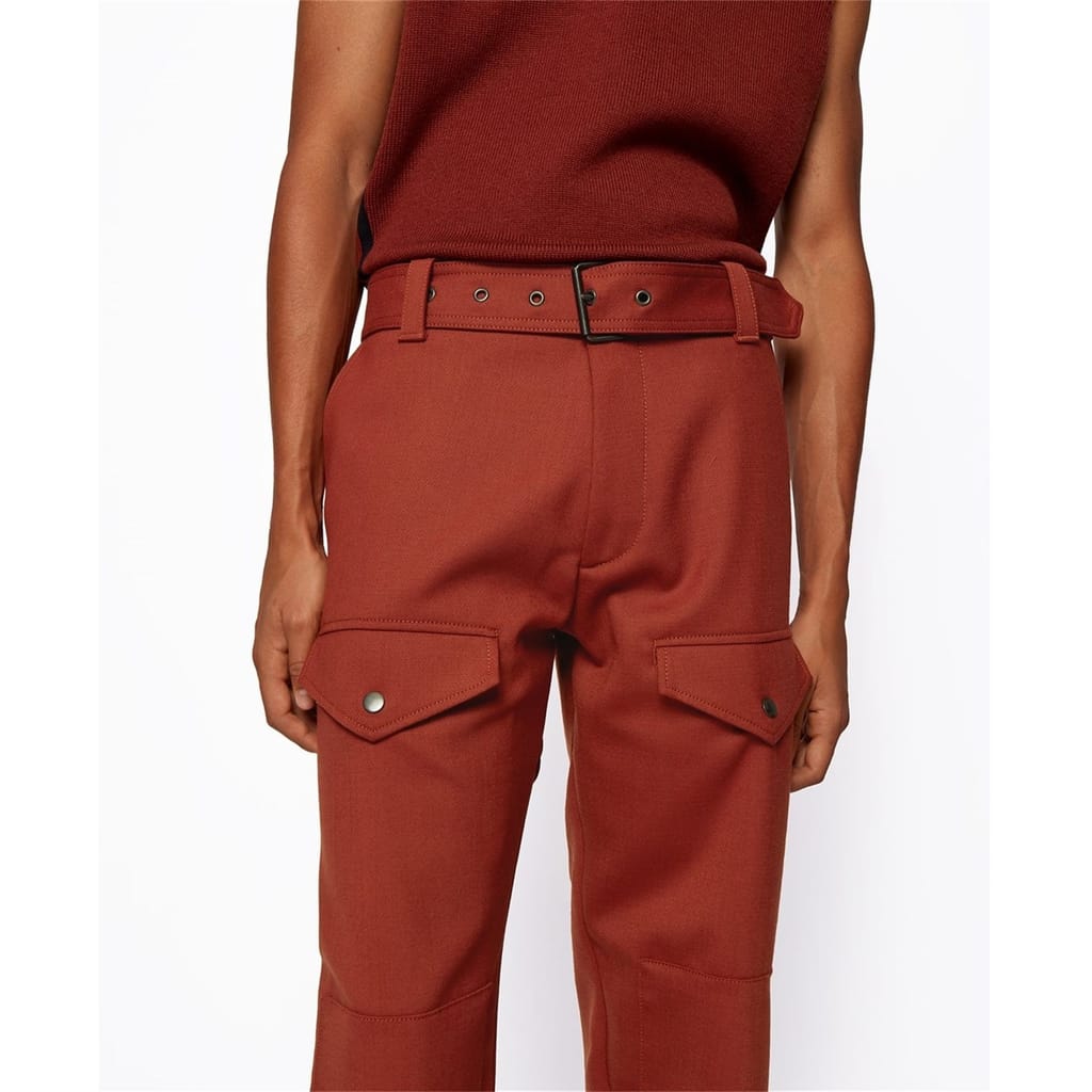 These Boss cargo pants offer a regular fit and feature a solid pattern. They come equipped with a zipper and button closure, as well as multiple pockets including front and back pockets. The subtle logo embellishment adds a touch of brand identity. -
