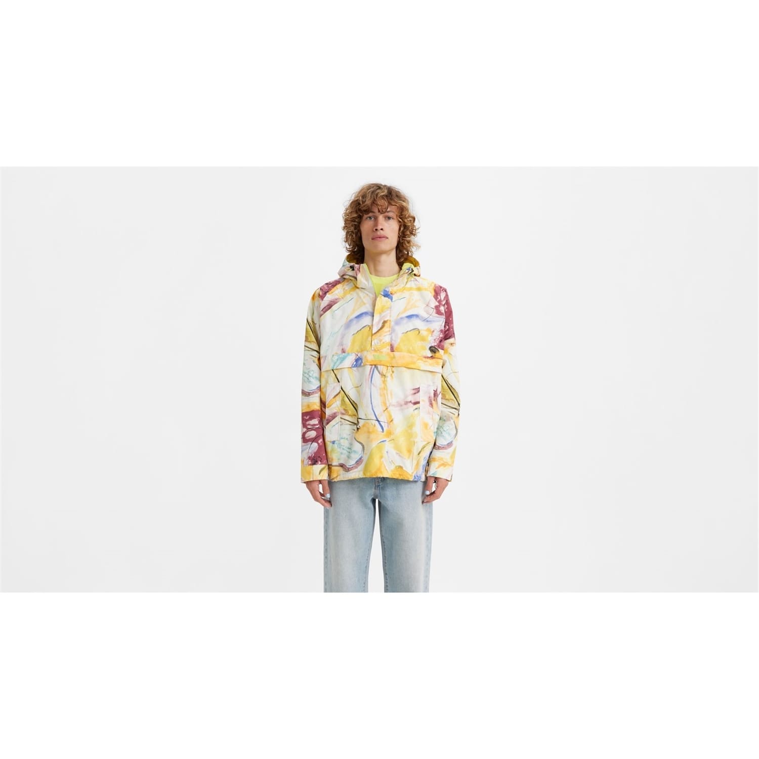 Revitalise your outdoor wear with this vibrant and fashionable Stockton Anorak from Levis. Constructed in nylon this Anorak is cut in a oversized, relaxed fitting, hooded water repellent design. Featuring a hooded neckline with drawstring fastener for an adjustable and comfier fitting. An additional two side pockets and elasticated waist band with a drawstring gives you control of the fitting. Finished in a all over colourful abstract design will make you stand out whatever the weather. Garment Care: Machine washable, follow care instructions. -