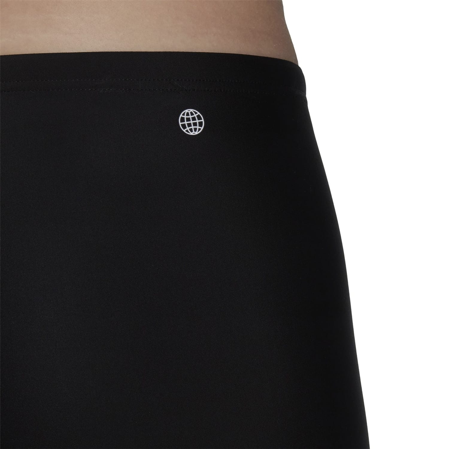 - Made with recycled nylon and featuring a jersey lining, these swim jammers not only provide exceptional comfort but also contribute to a sustainable future. The Econyl fabric and Infinitex Fitness Eco technology ensure durability and resistance to chlorine, making them ideal for intense fitness training sessions. The mid-rise, regular comfort fit, along with the elasticated waist and drawcord, guarantee a snug and secure feel, with the freedom of movement they offer, you'll outperform your personal best in the pool. Inspired by adidas' iconic 3-stripe logo, the graphic design printed on the side adds a touch of style and authenticity. Boost your confidence, and make a statement with the logo printed on the hem. Dive into greatness -