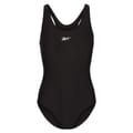 This Reebok Adelia Swimsuit is crafted with racer back straps, a crew neckline and an open back for a classic look. It features flat lock seams to prevent chafing and is a lightweight construction. This swimsuit is a solid colouring throughout designed with a signature logo and is complete with Reebok branding. -