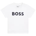 Elevate your little one's every day collection with this Large Logo T Shirt from BOSS. Crafted from a soft cotton fabric, this t shirt is cut in a regular fit and features a ribbed crew neckline with short sleeves, a straight hemline and elasticated trims for a comfortable fit. Decorated in a solid colouring throughout, the look is finished with the brand's signature text logo shown proudly to the chest for brand recognition and loyalty. Material: 100% cotton. Trimming: 96% cotton, 4% elastane. Machine washable at 30 degrees. -