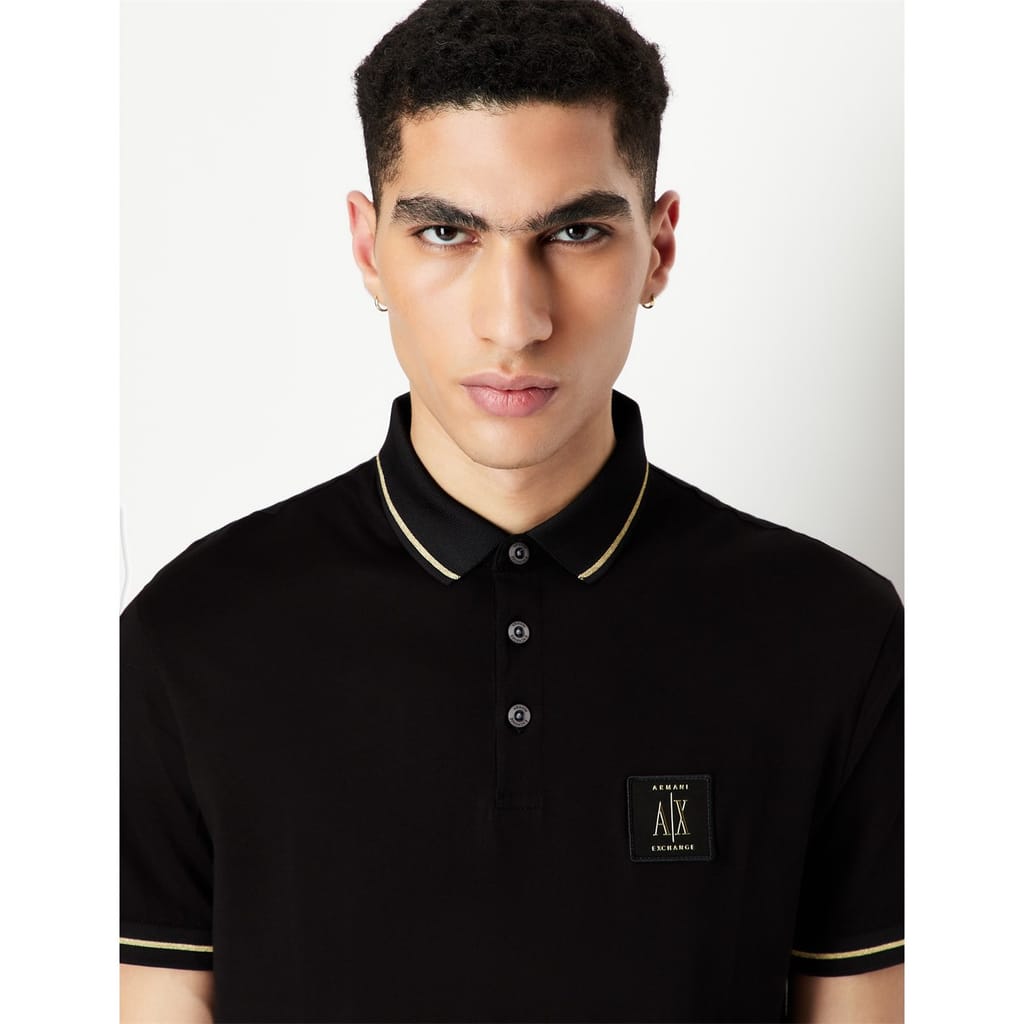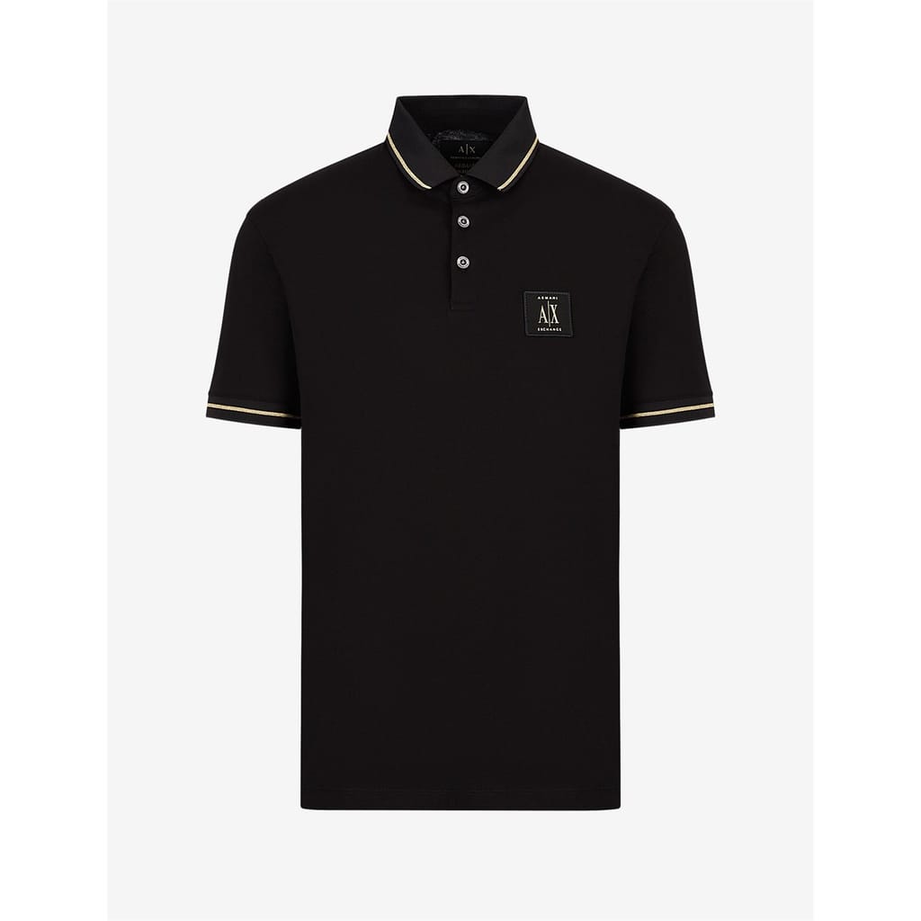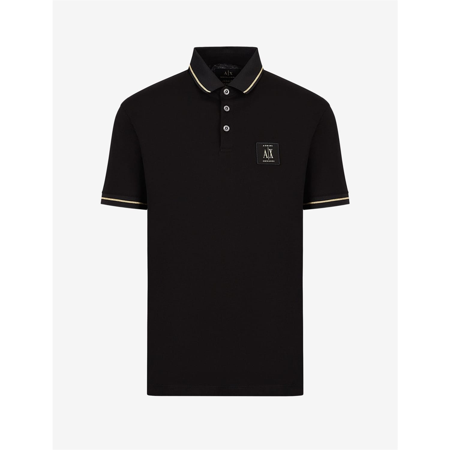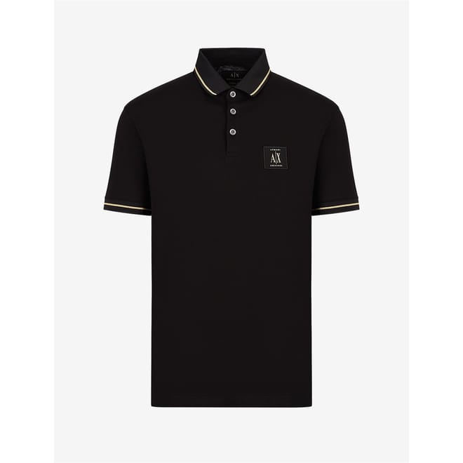 Update your everyday casual wear with this fashionable Small Icon Polo from Armani Exchange. Crafted in a comfy 100% premium cotton fabrication, this top comes in a regular fitting, short sleeved polo top design. Highlighting a classic polo neck collar, straight hem and easily fastened by a three button placket. The look is finished in a black and gold colouring, completed with contrasting gold tonal stripes to the sleeves and collar and signed off with the AX branding to the chest.