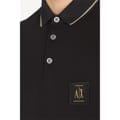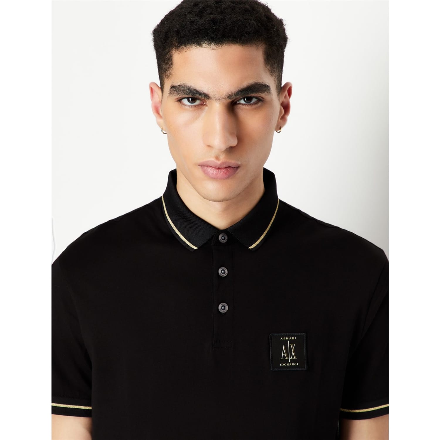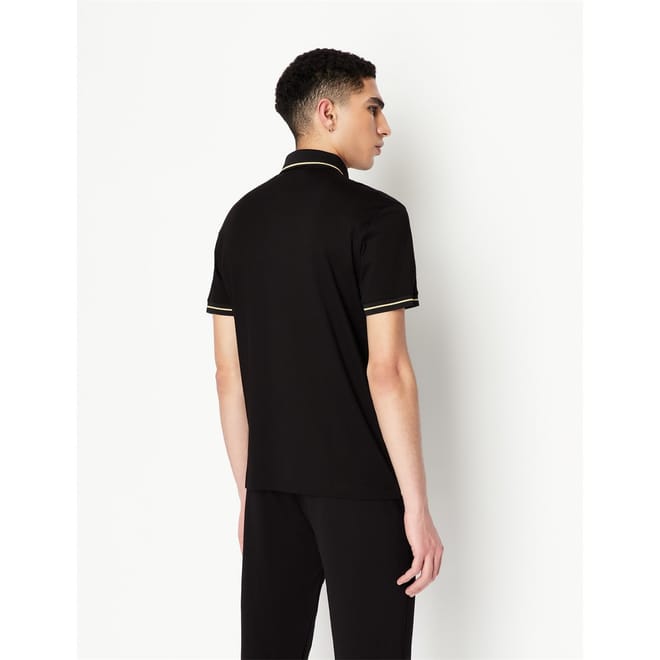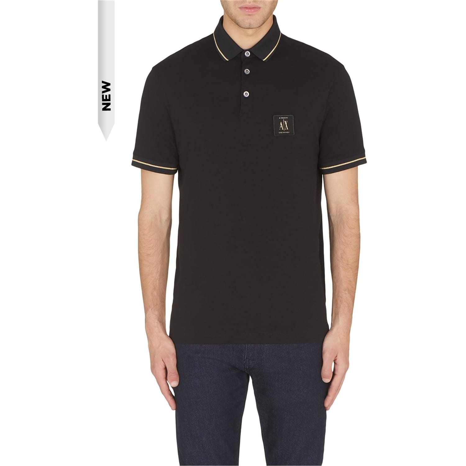 Update your everyday casual wear with this fashionable Small Icon Polo from Armani Exchange. Crafted in a comfy 100% premium cotton fabrication, this top comes in a regular fitting, short sleeved polo top design. Highlighting a classic polo neck collar, straight hem and easily fastened by a three button placket. The look is finished in a black and gold colouring, completed with contrasting gold tonal stripes to the sleeves and collar and signed off with the AX branding to the chest.