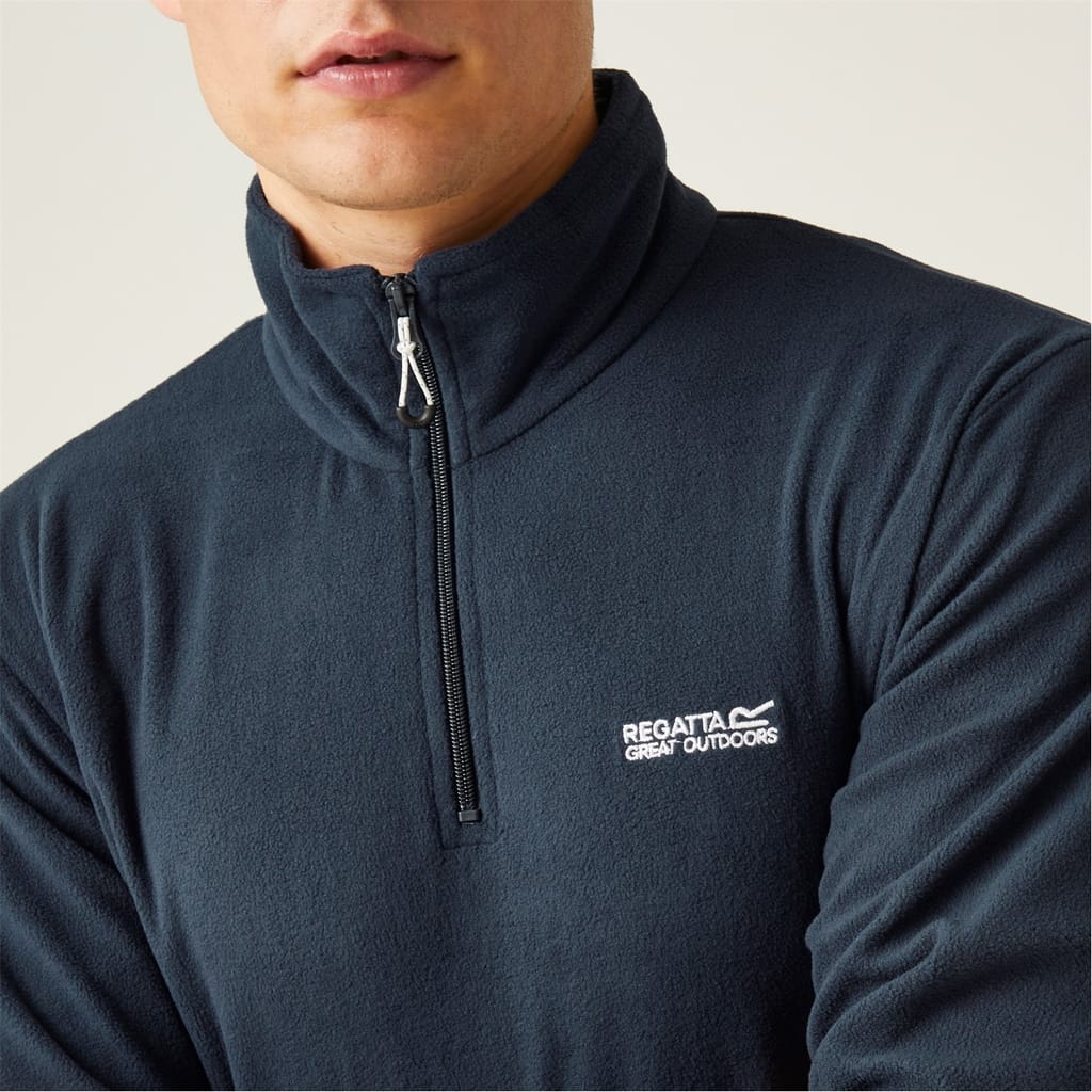 This Regatta Thompson Fleece Jacket is crafted with half zip fastening and long sleeves for a secure fit. It features elasticated hems for a comfortable fit and is a lightweight construction. This jacket is a solid colouring throughout designed with a signature logo and is complete with Regatta branding. -