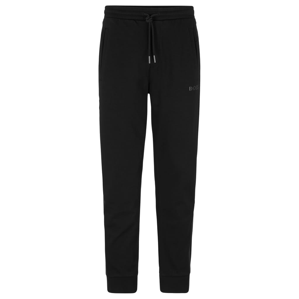 Hugo Boss men's cuffed straight fit Hadiko jogging bottoms. Complete with side pockets, welt pocket to back, elasticated waistband with drawstring for adjustability. BOSS taping down each side of the leg. 73% cotton, 27% polyester for a comfortable feel. -
